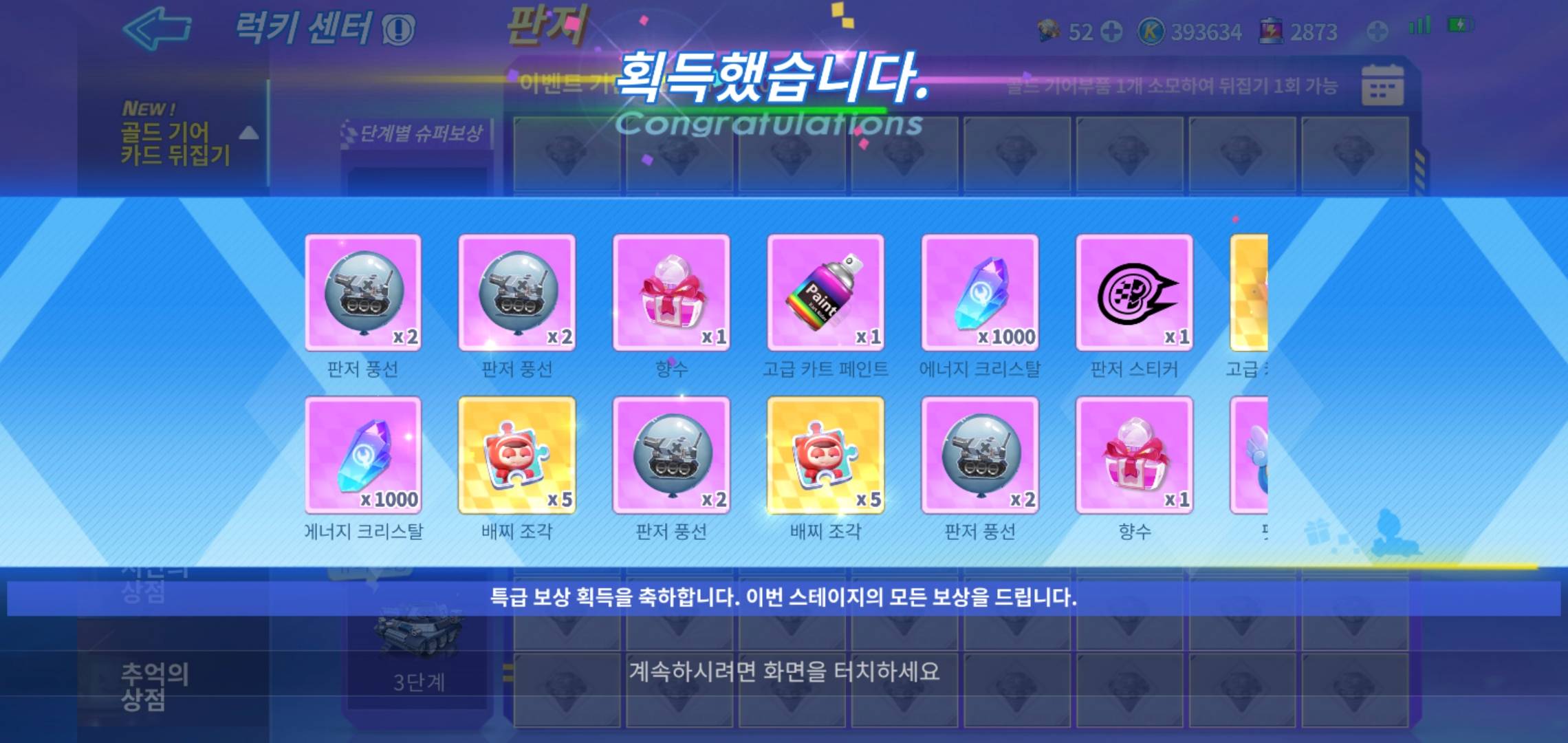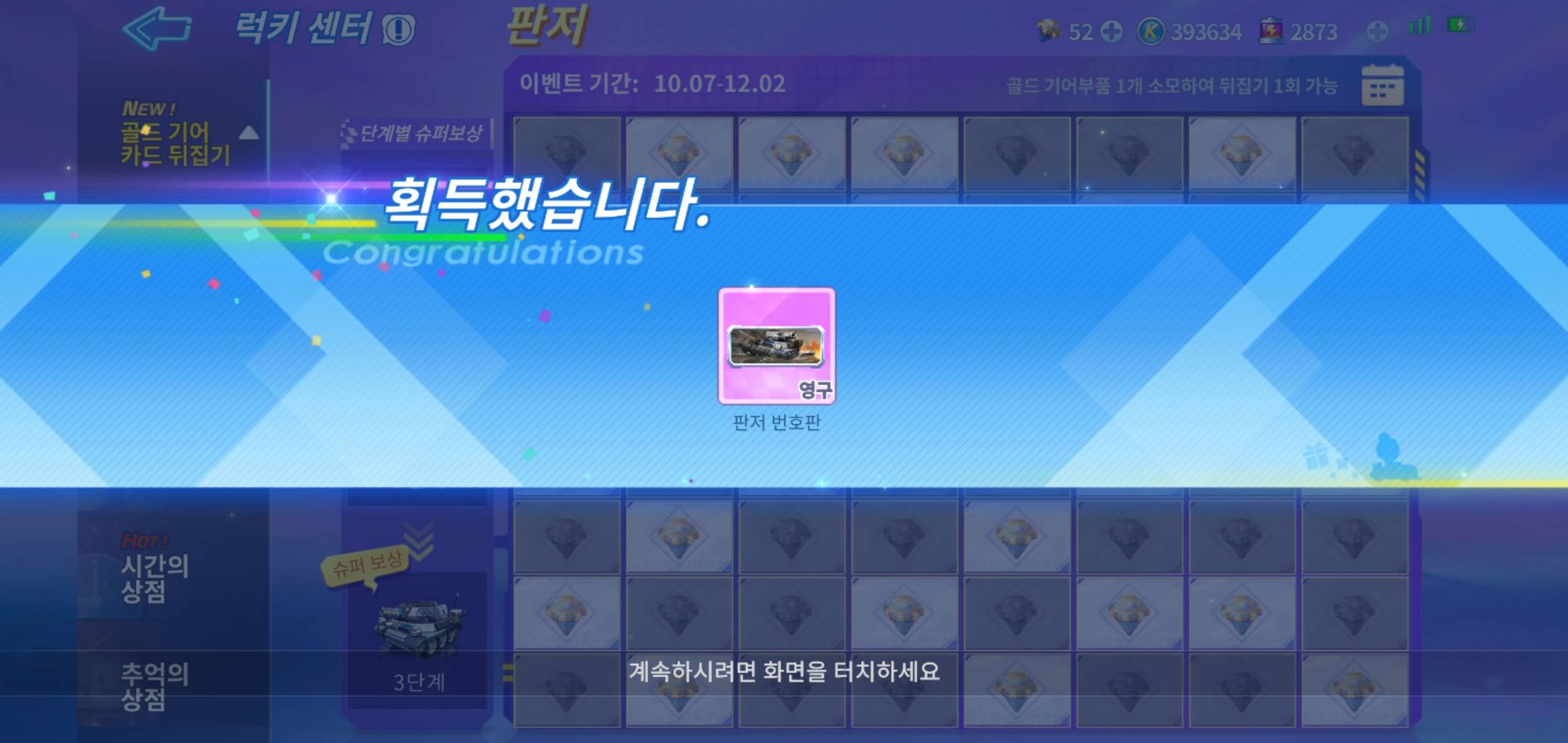판저를 얻기 위해서는 인게임 재화인 "골드 기어부품"이 필요하며, 이번 이벤트는 랜덤으로 섞여있는 64칸의 랜덤 보드 칸에서 한 판당 판저 스티커 10개를 모아서 해금을 하여 총 3단계에 걸친 뽑기를 해야만