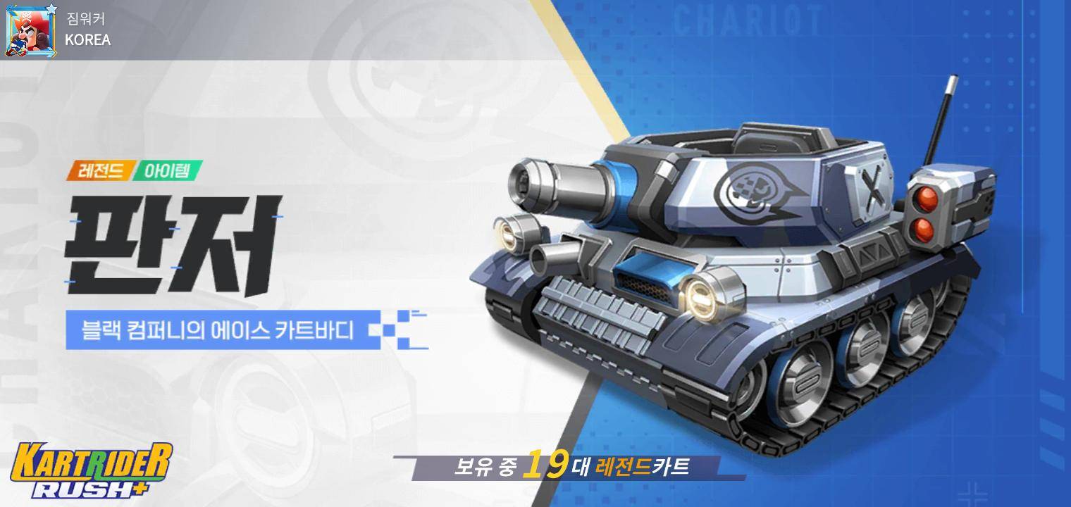 모바일 카트라이더 러쉬플러스의 이번 시즌 15의 신규 아이템 카트는 "판저"라는 탱크입니다.