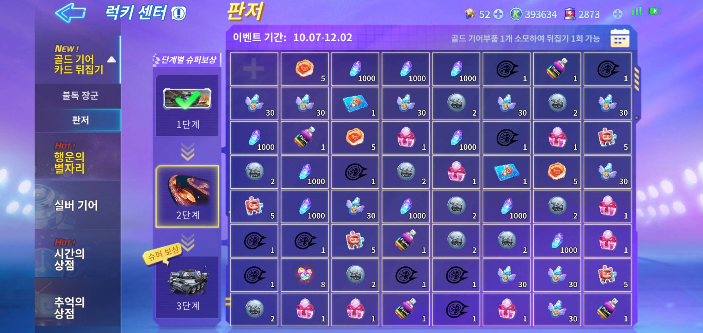 2단계 보드판을 시작하기 전 남아있던 골드 기어부품은 총 52개에서 시작해서