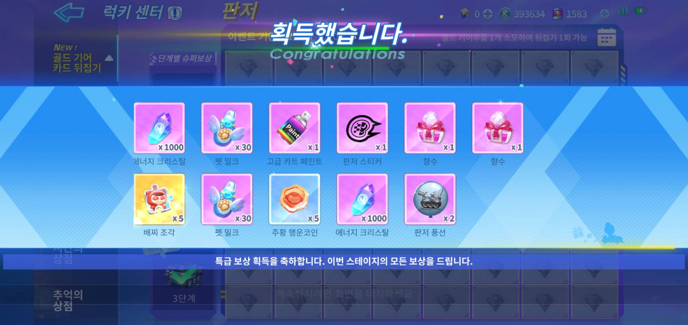 뽑기 보드 게임을 진행하면서 만약 중간에 메인 재화를 얻고나서도 보드판의 빈 칸이 남아있다면