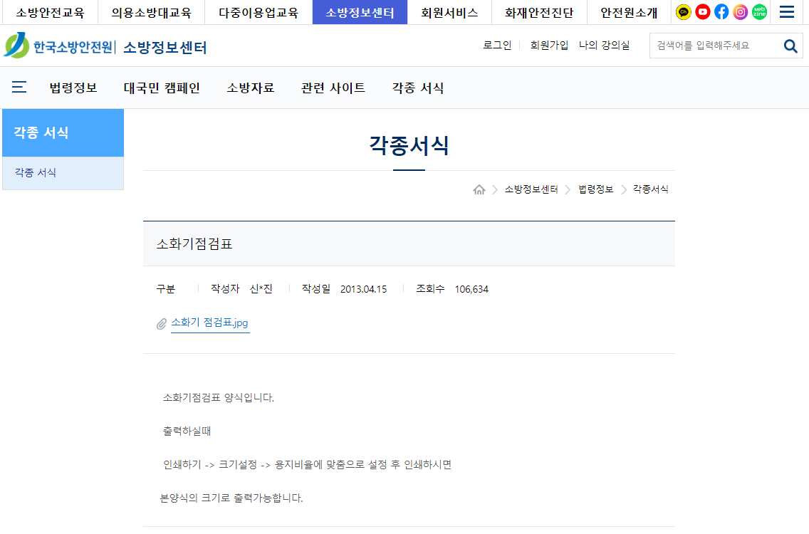 한국소방안전원에서 배포하는 무료서식 이용하기 - 소화기 점검표