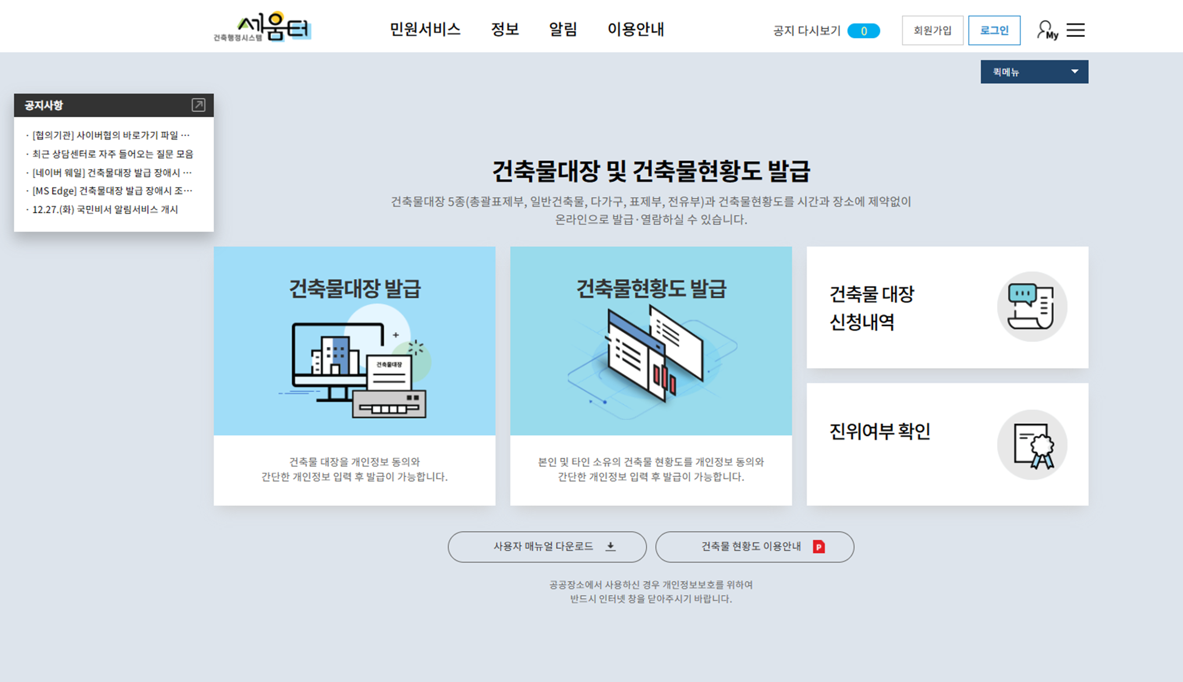 건축물대장 간편하게 온라인 발부 받기 - 세움터