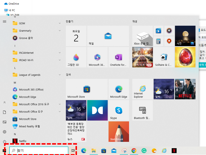 윈도우 10의 작업표시줄 좌측의 입력 콘솔에 "실행"이라고 직접 입력을 해도 되며