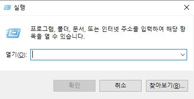 단축키로도 활성이 가능한데 "Win 키 + R" 를 눌러주시면 똑같은 실행 결과를 볼 수 있습니다.