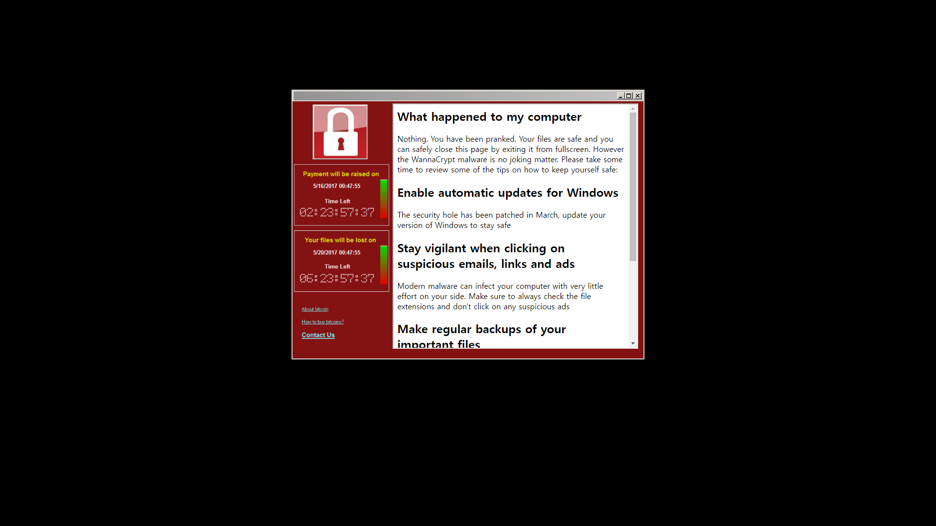 무려 랜썸웨어에 걸렸을 때 보여주는 암호화 창도 있어서
