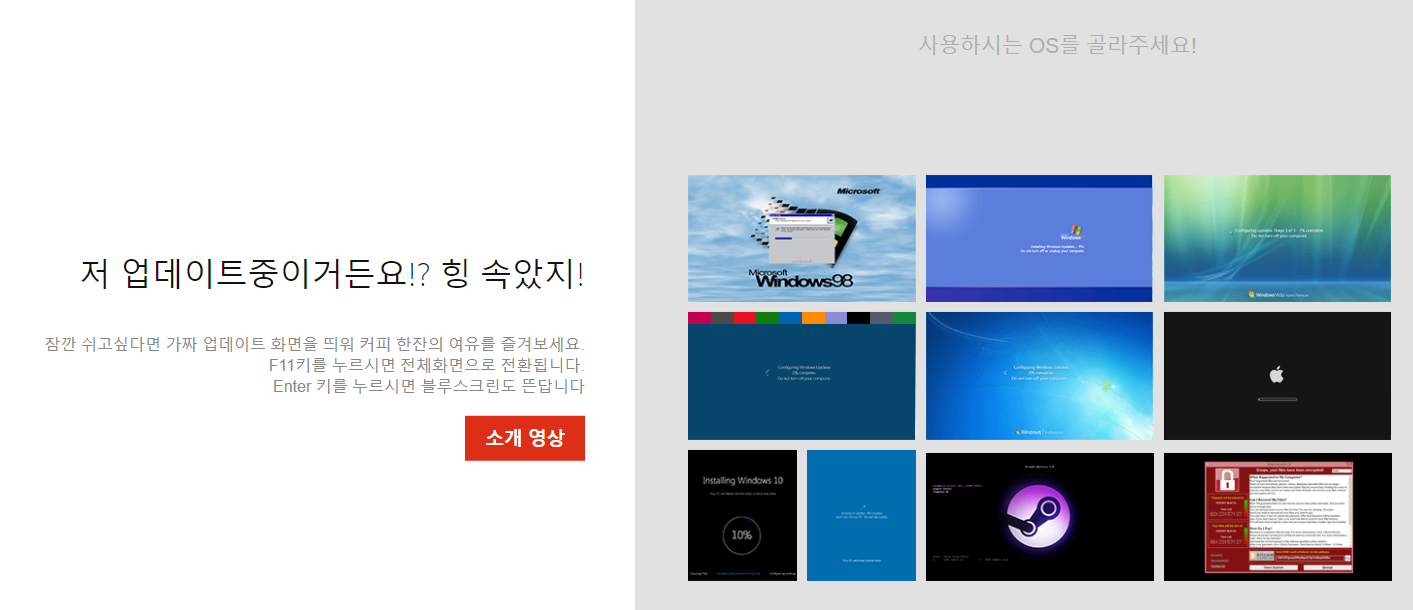 사이트 이름 그대로 사용자의 PC OS의 "가짜업데이트"를 진행하는 척 화면을 보여주는