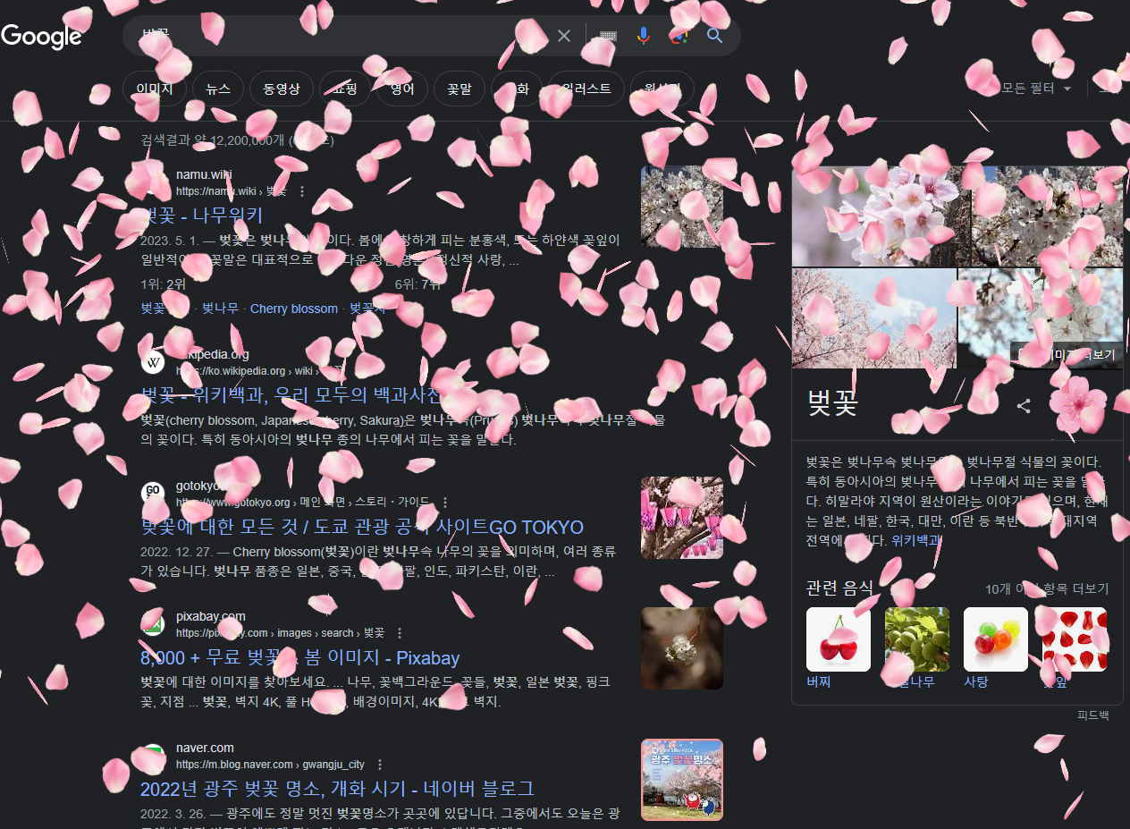 구글 검색창에 벚꽃을 휘날려 보자 - "벚꽃" 이스터에그