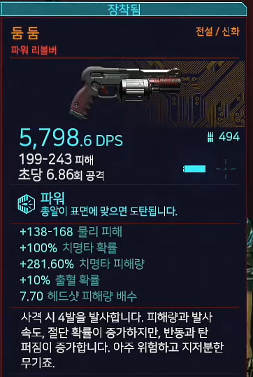 인게임상으로도 상당히 능력이 좋고 대미지도 짱짱한 무기라서 사이버펑크 2077을 플레이하시거나