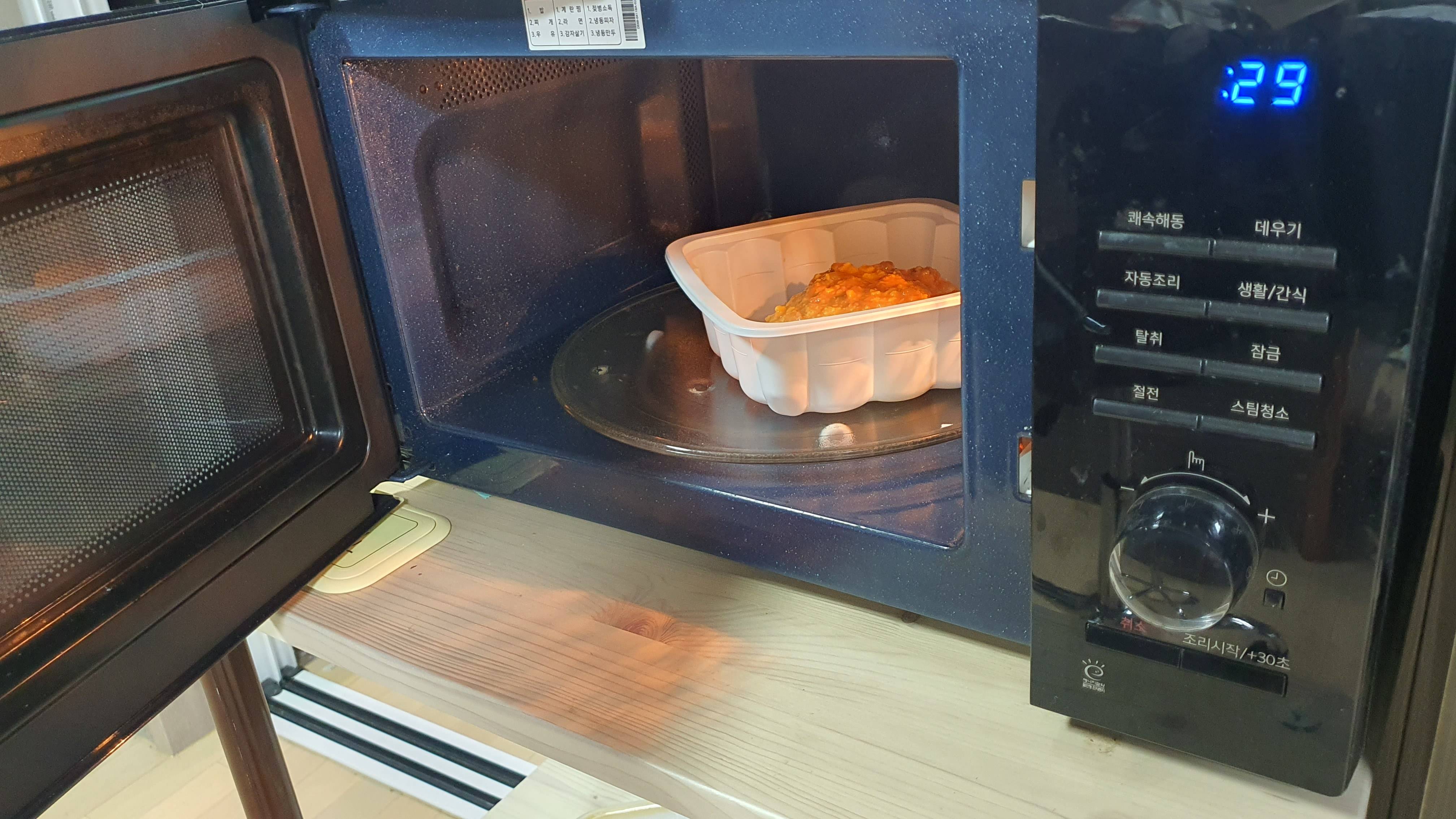 소스를 다 부어줬다면 30초 정도 전자레인지에 더 돌려줍니다.
