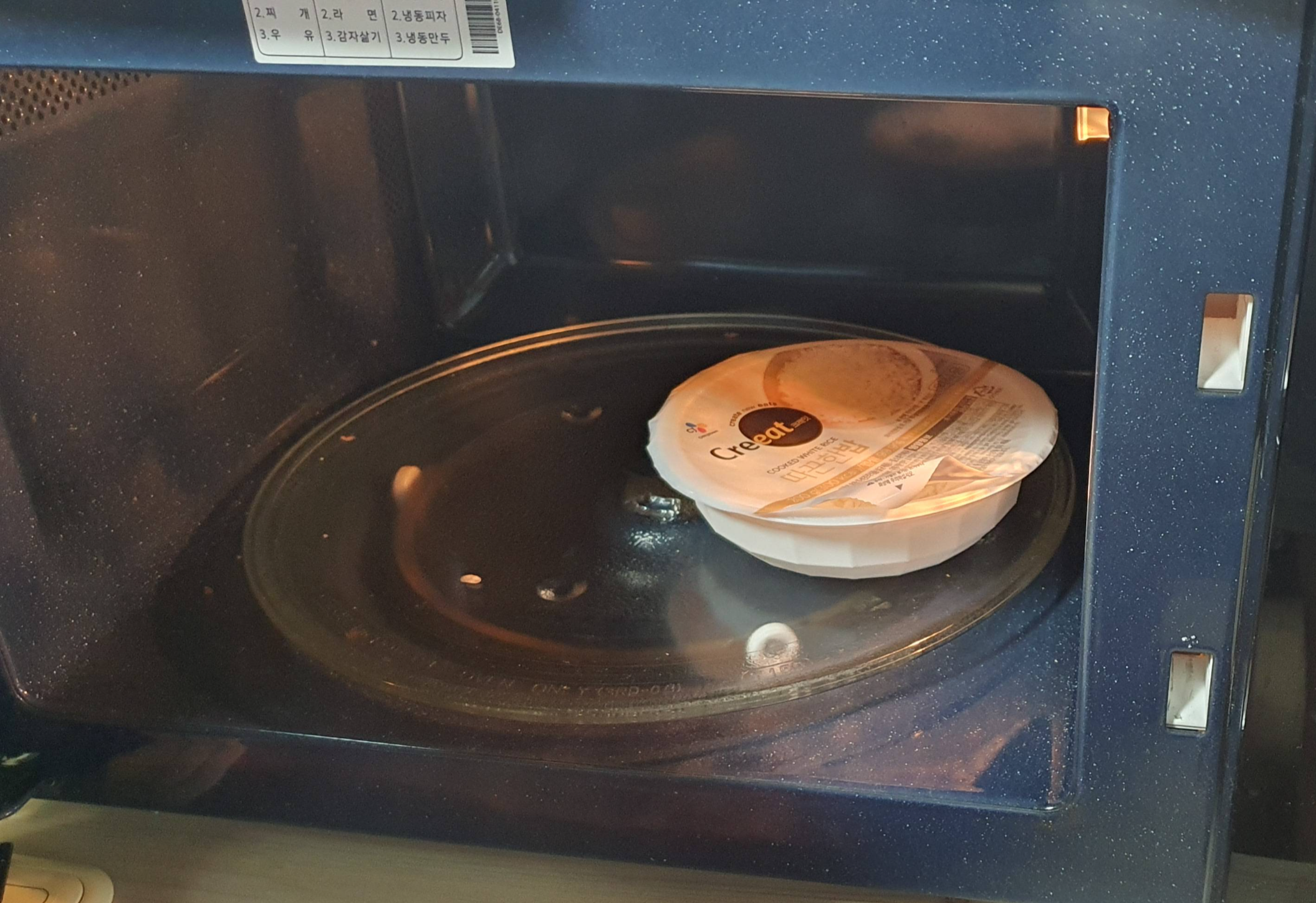 일단 전자레인지에 조리법대로 즉석밥을 2분 30초 정도 먼저 돌려줍니다.