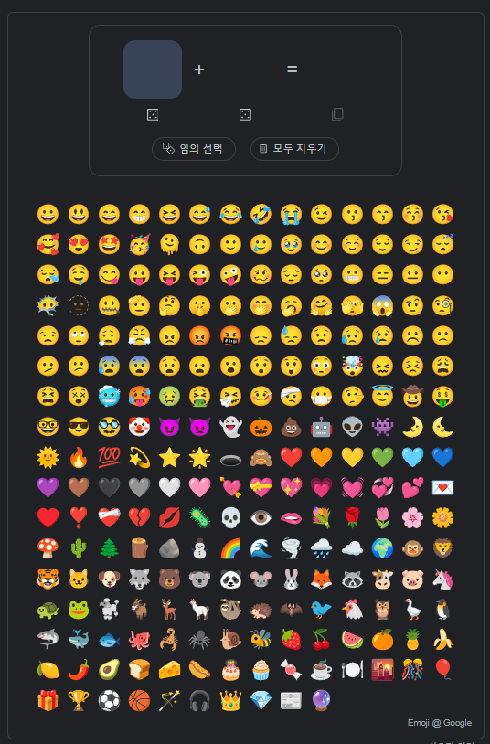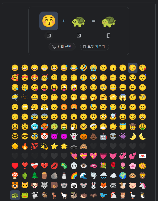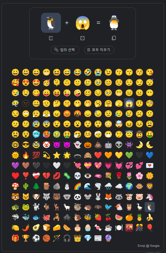 상당히 조합 조건이 무궁무진하기 때문에 한 번 직접 해보시면 재미있는 이모지 조합 결과를 많이 얻을 수 있으실 겁니다.
