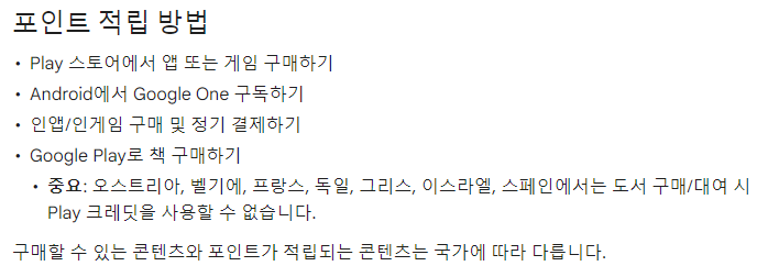 참고로 구글 플레이 포인트를 적립하기 위해서는 상기와 같은 방법으로 적립이 가능하니 참고 바랍니다.
