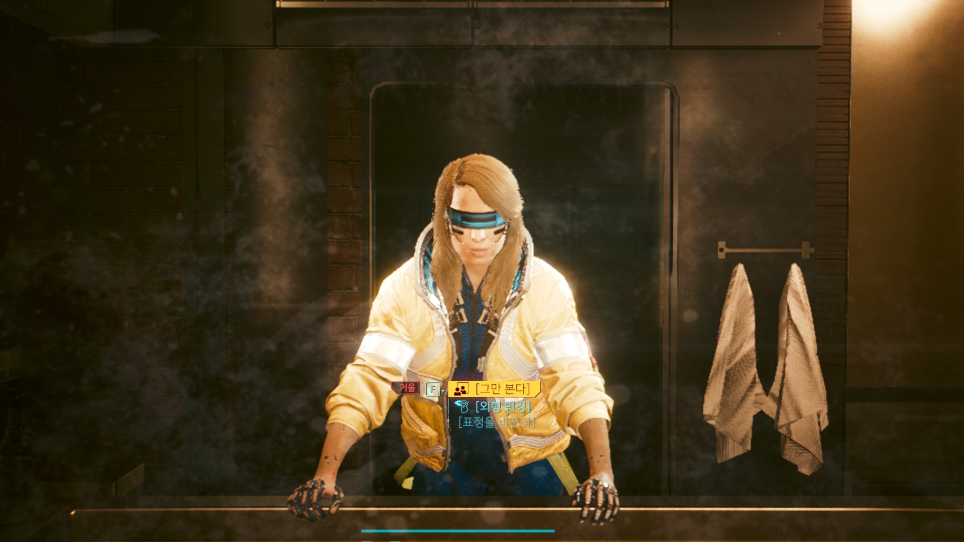 참고로 제가 플레이하고 있던 당시 V 캐릭터는 여캐였는데 외부 치장 아이템으로 장착했을 때 이런 모습이었습니다.