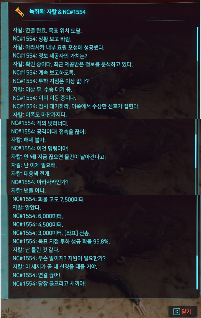 어딘가의 넷너러로 의심되는 이 NPC를 확인해 보면 "녹취록: 자칼 & NC#1554"라는