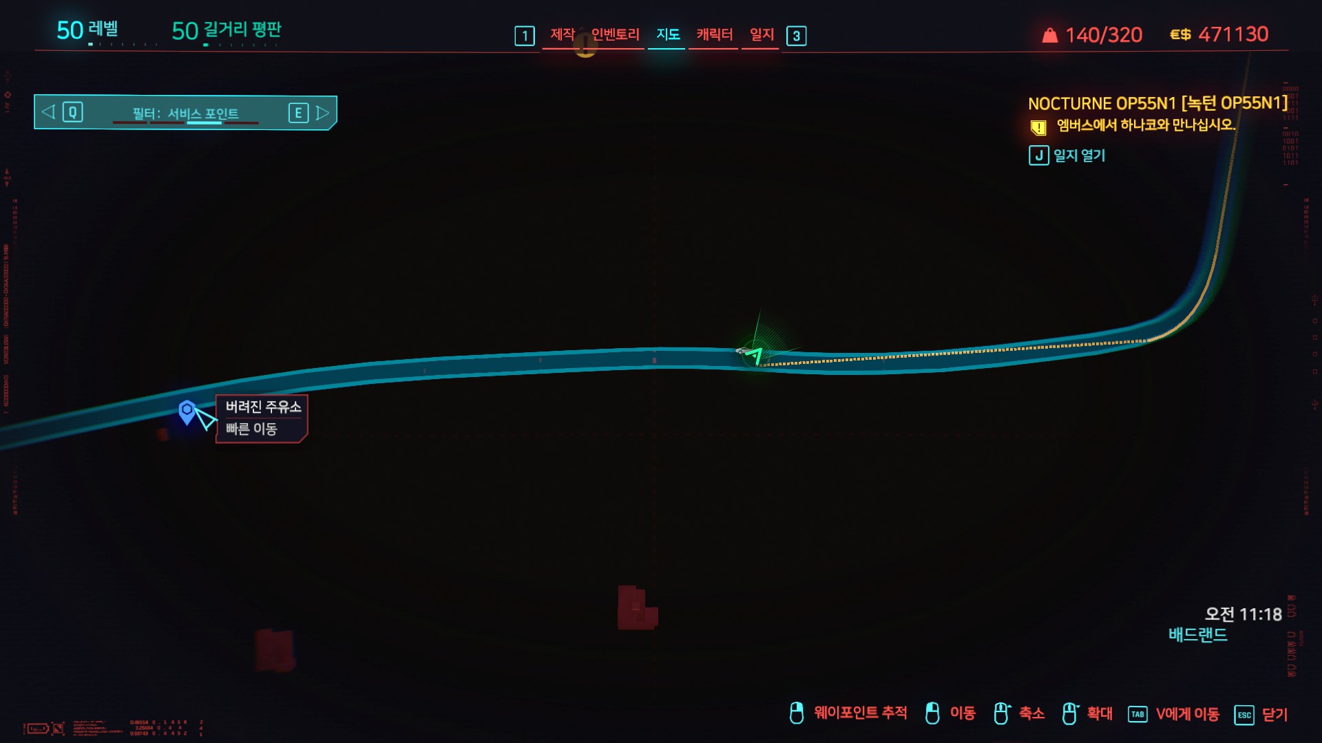 위의 스크린샷대로 배드랜드 지역에 있는 "버려진 주유소"라는 빠른 이동 서비스 포인트를 이용해 줘서