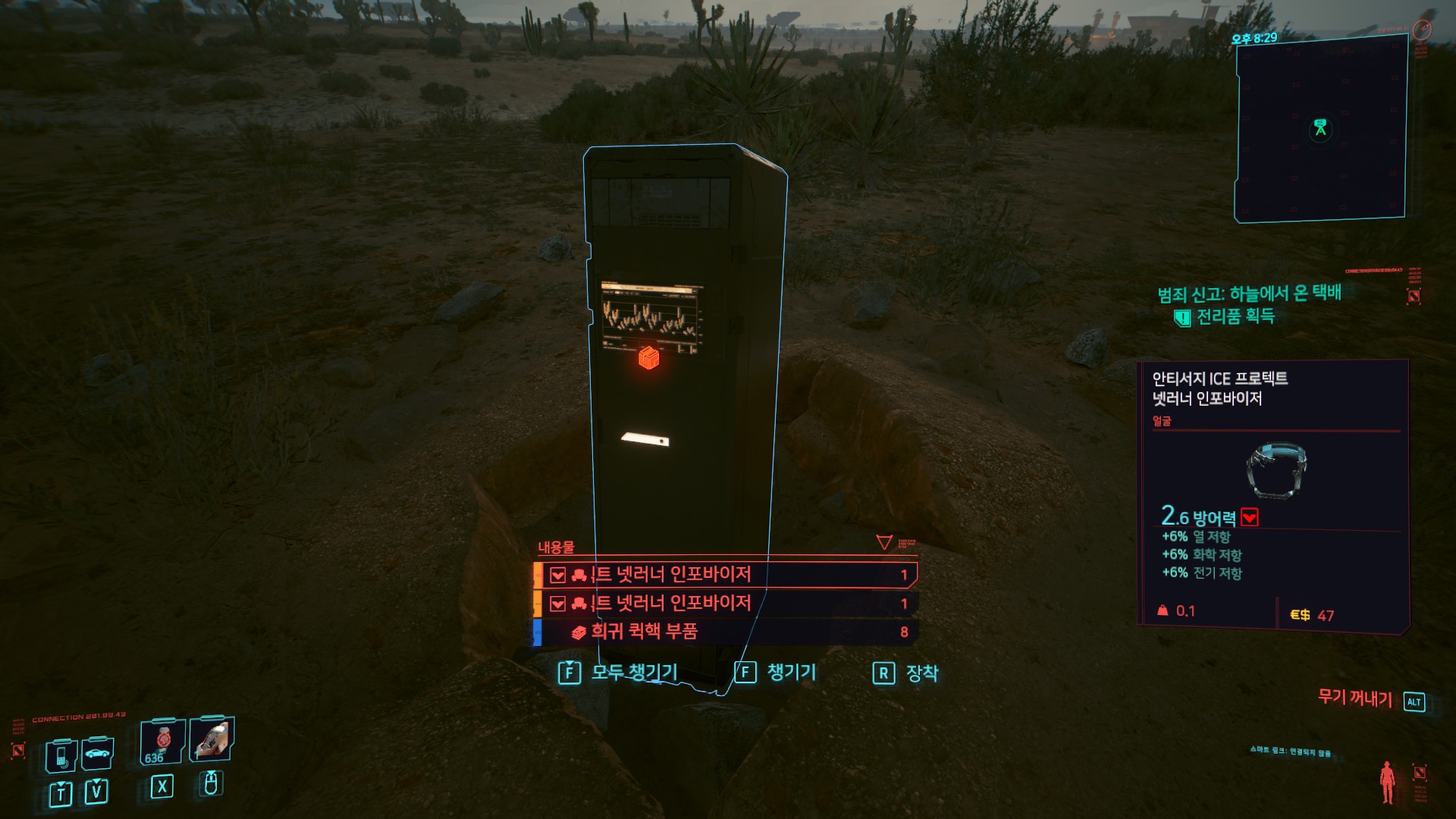 사이버펑크 2077 신화급 얼굴 치장 아이템 쉽게 얻어보자 - 범죄신고 : 하늘에서 온 택배
