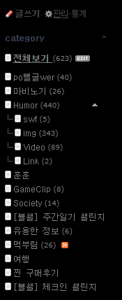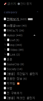 그리고 보시면 아시겠지만 어떤 카테고리는 괄호와 숫자가 표현된 포스팅 숫자가 있는데