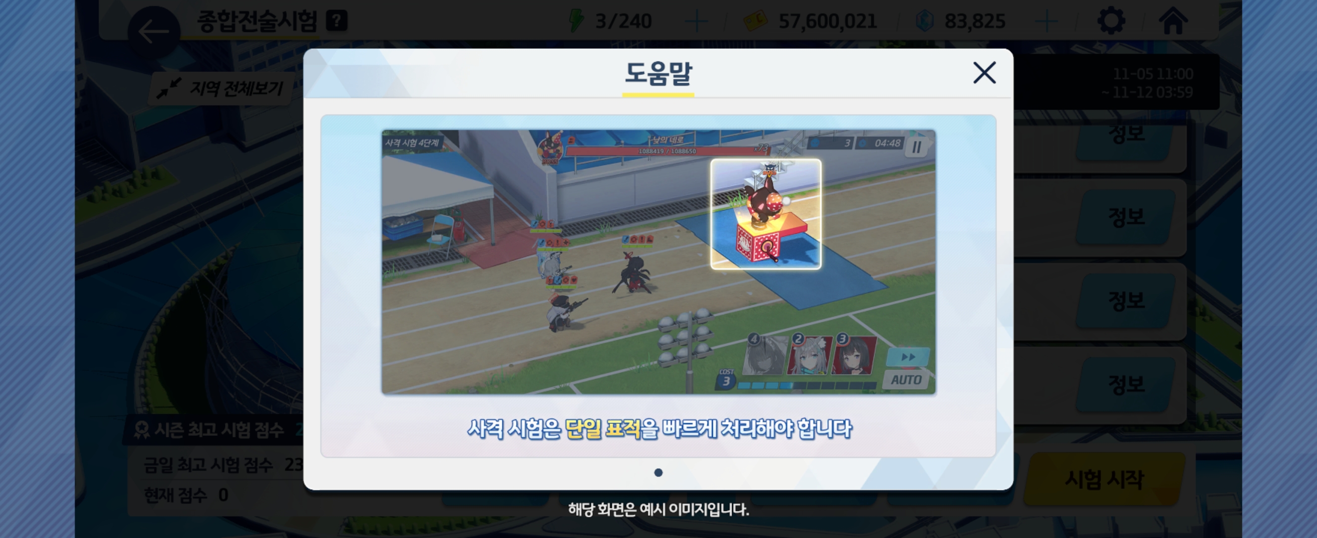 블루아카이브 종합전술시험 사격 시험 4단계 클리어 지향 파티 조합 및 스펙 상세안