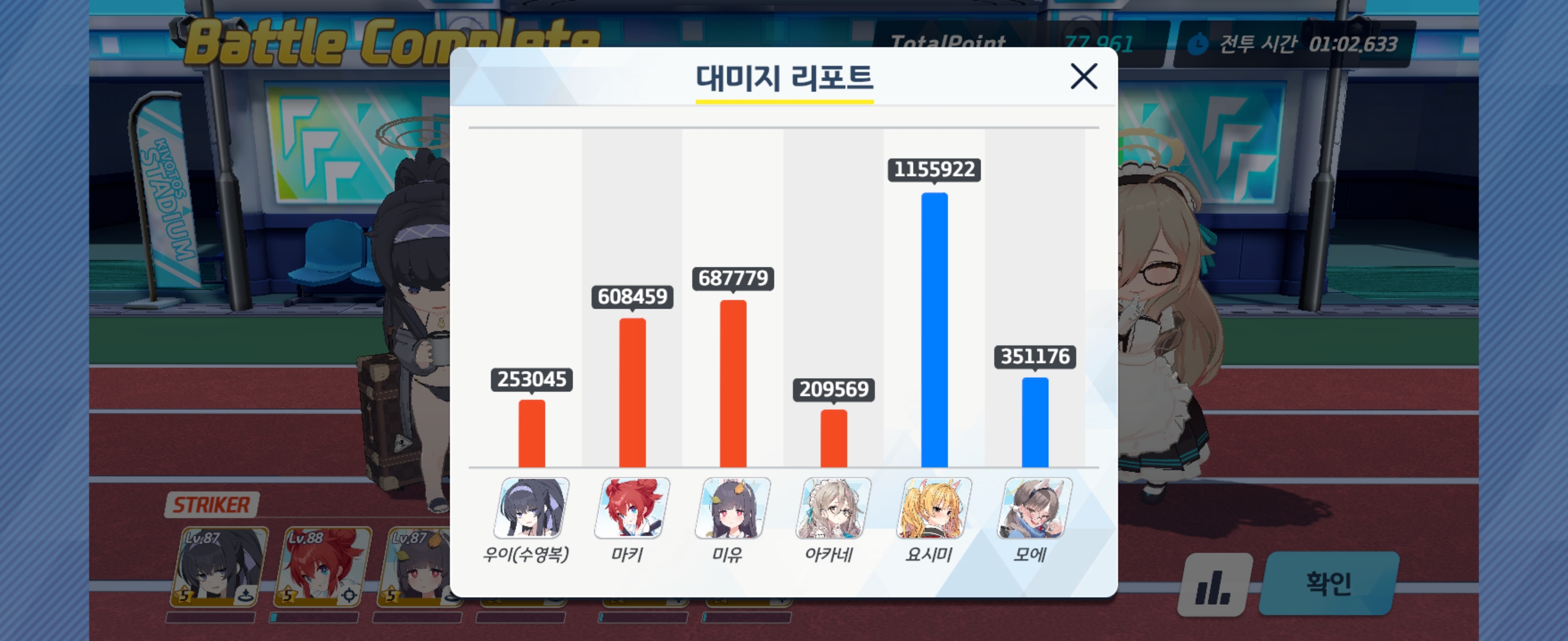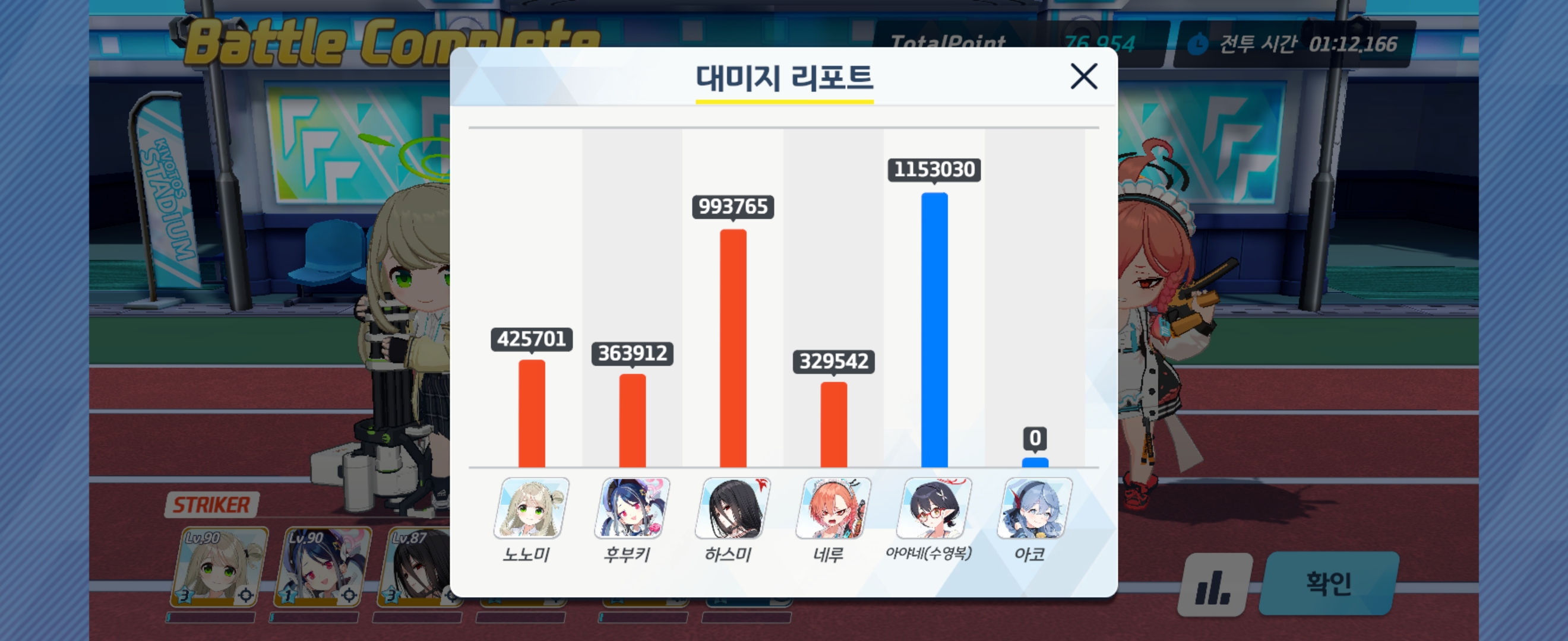 어디까지나 아직 완성되지 않은 학생들의 스킬, 장비, 호감작 미달, 그리고 학생들의 조합이