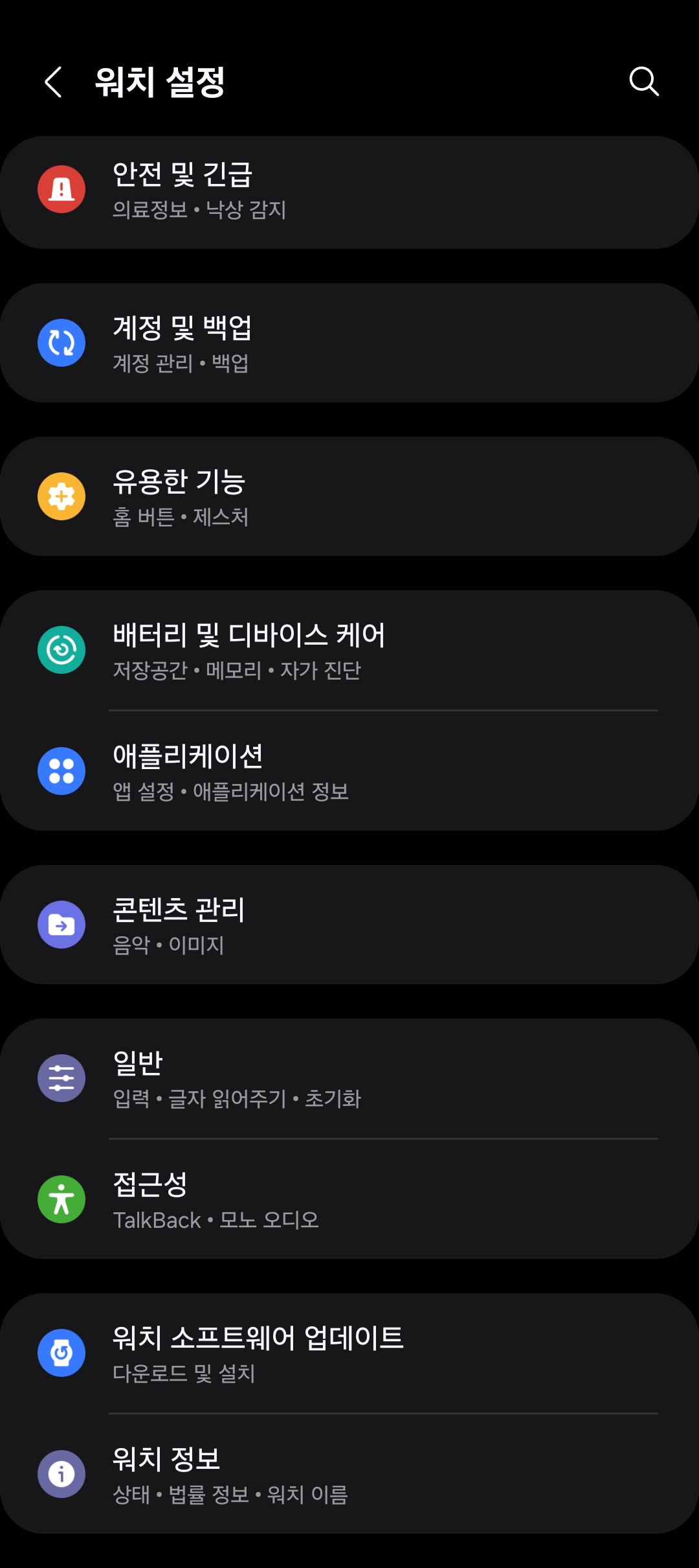 워치 설정 항목으로 진입하셔서 밑으로 조금만 내리면 "일반" 항목이 보이실 겁니다.