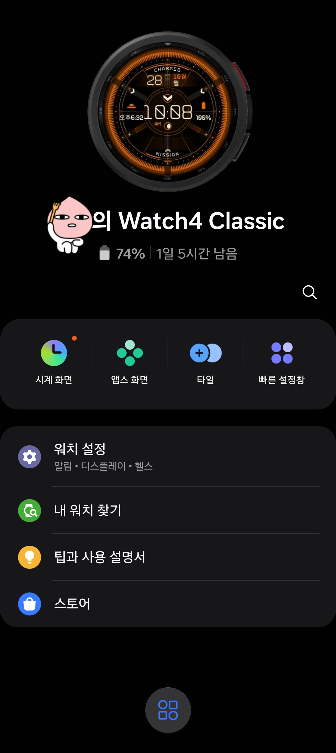 웨어러블 앱을 실행 시킨 상태에서 "워치 설정" 항목으로 들어가 줍니다.