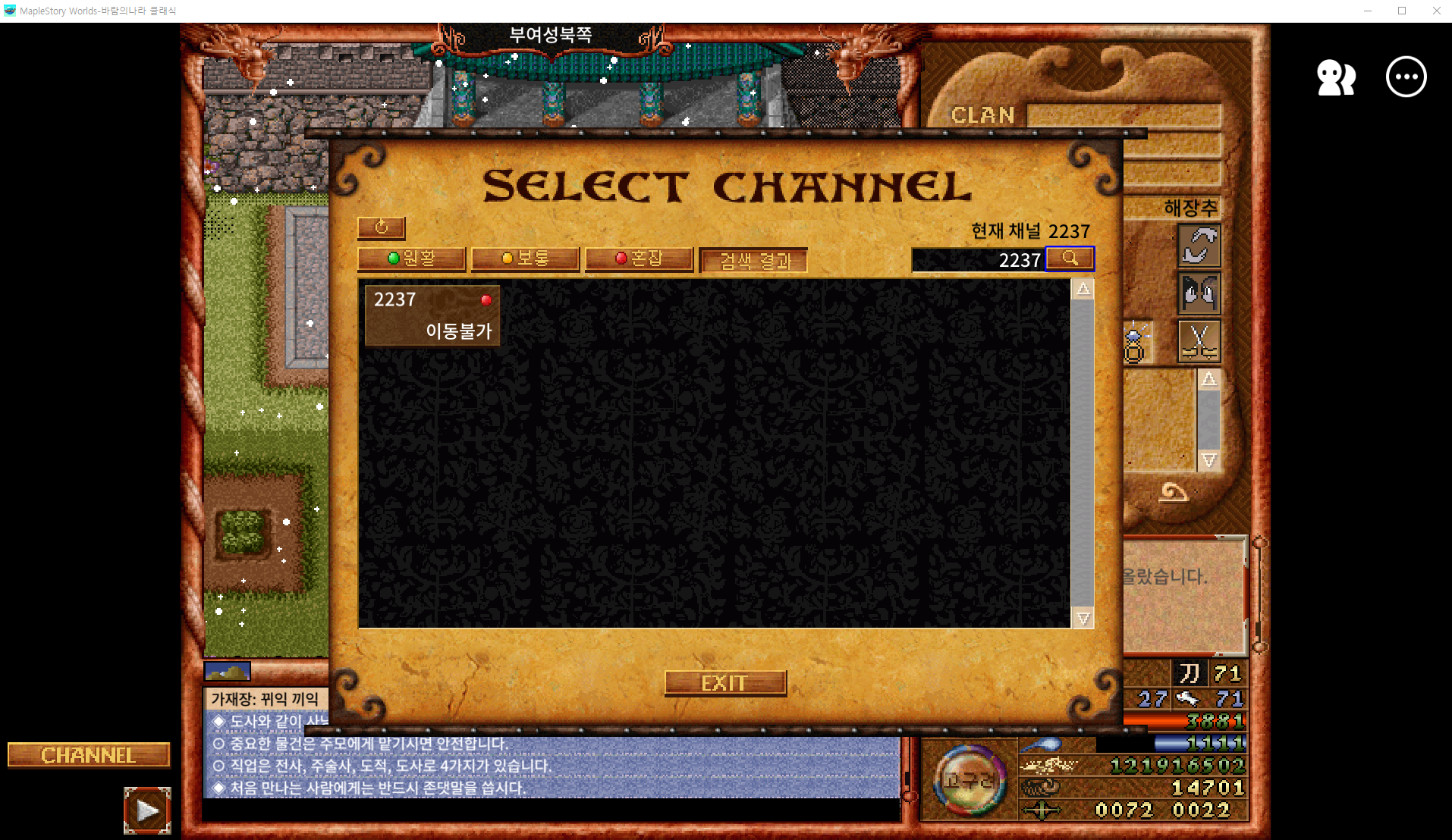 메이플월드 바람의나라 클래식 - 채널이동 하는법
