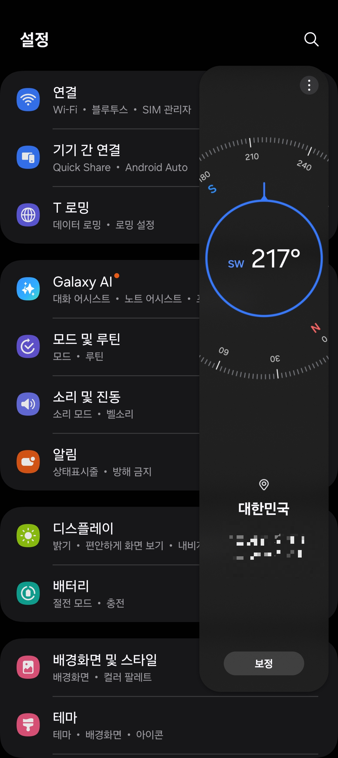 엣지패널을 열어보면 상기와 같이 나침반이 활성화되어 있을 건데요.