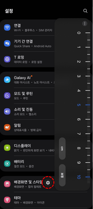 엣지패널을 상기 이미지 같이 "자"로 변경하기 위해서는 엣지패널 활성화 외에 한번 더 설정을 해야 합니다.