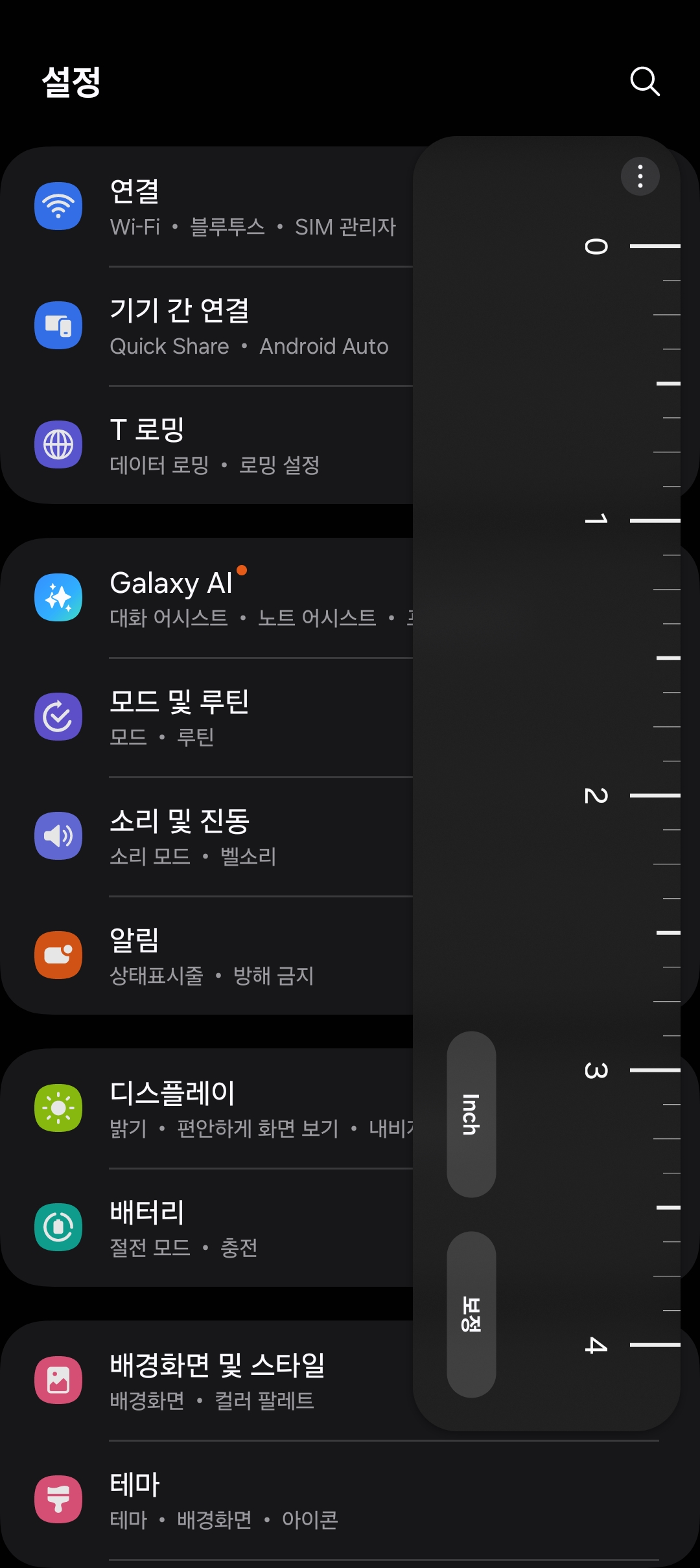 갤럭시 엣지 패널로 자(Ruler) 사용하기