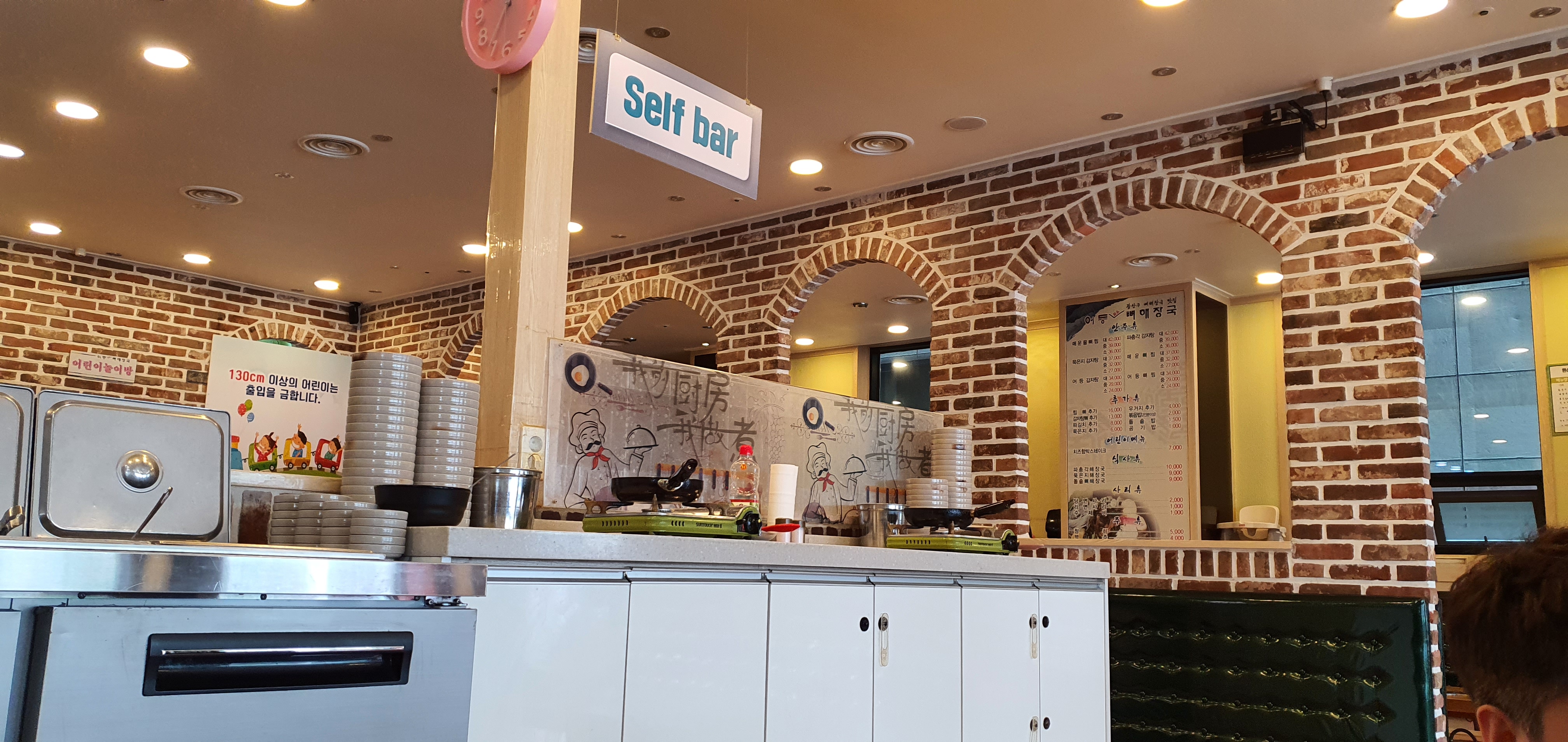 그리고 식당 한가운데에 계란후라이를 부쳐 먹을 수 있는 셀프바가 있습니다. 아쉽게도 계란이 무한으로 제공되는 건 아니고 1인당 1개씩 날계란이 식사를 주문하면 주어집니다. 계란 싫어하시는 분이랑 같이 가면 이득인(?) 부분 아닐까 싶네요.