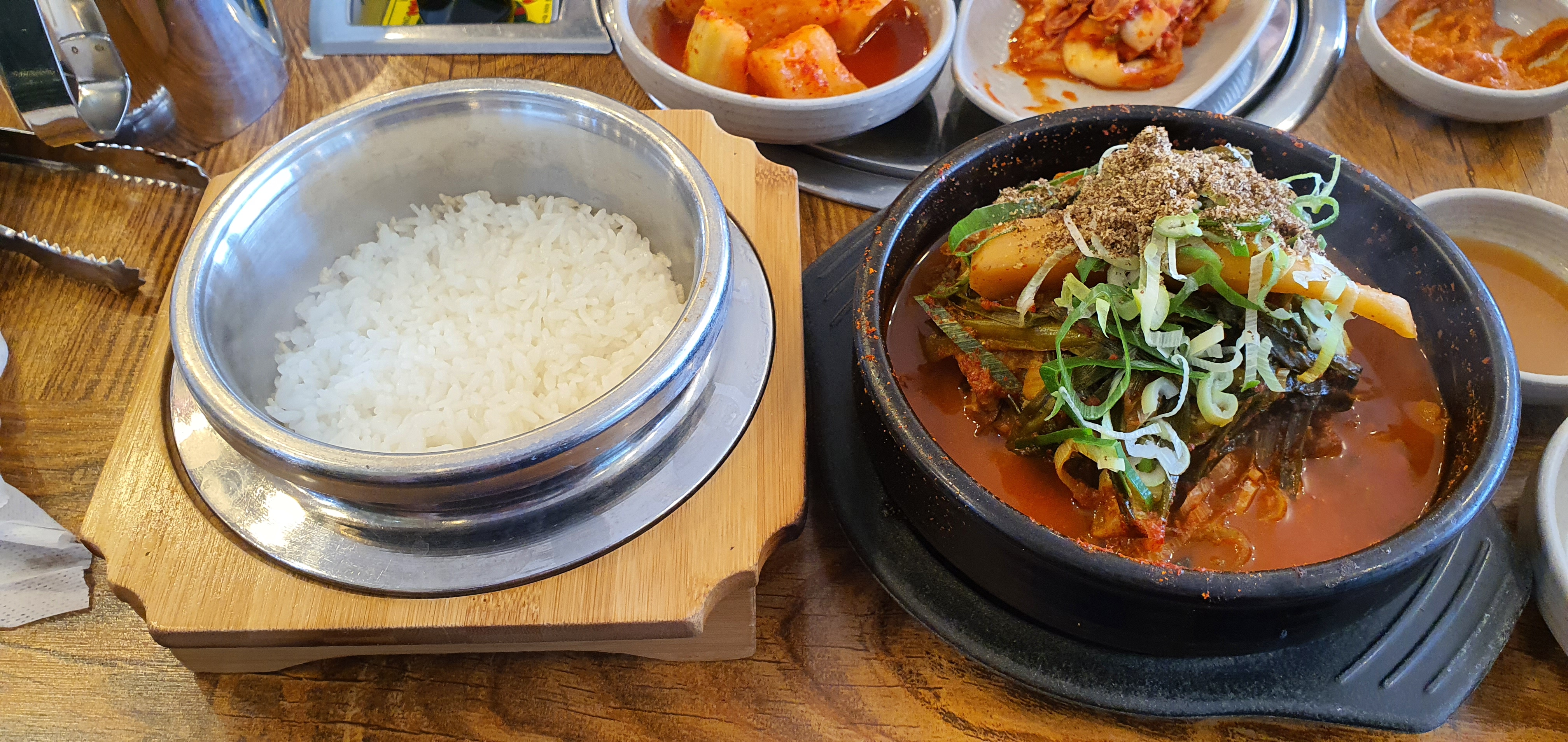 메인 식사가 나오고 곧바로 뜨끈한 밥도 같이 나왔습니다. 뼈찜 두 덩이에 파김치들에 국물에 밥까지 말아먹으니까 해장을 하러 간 건지 배를 채우러 간건지 모르게 배가 정말 터질 정도 였습니다. 거기다가 저 밥을 퍼낸 그릇에 미지근한 물을 부어 숭늉을 안 먹으면 또 덜먹고 가는 느낌이라 그것까지 채워먹고 왔습니다.