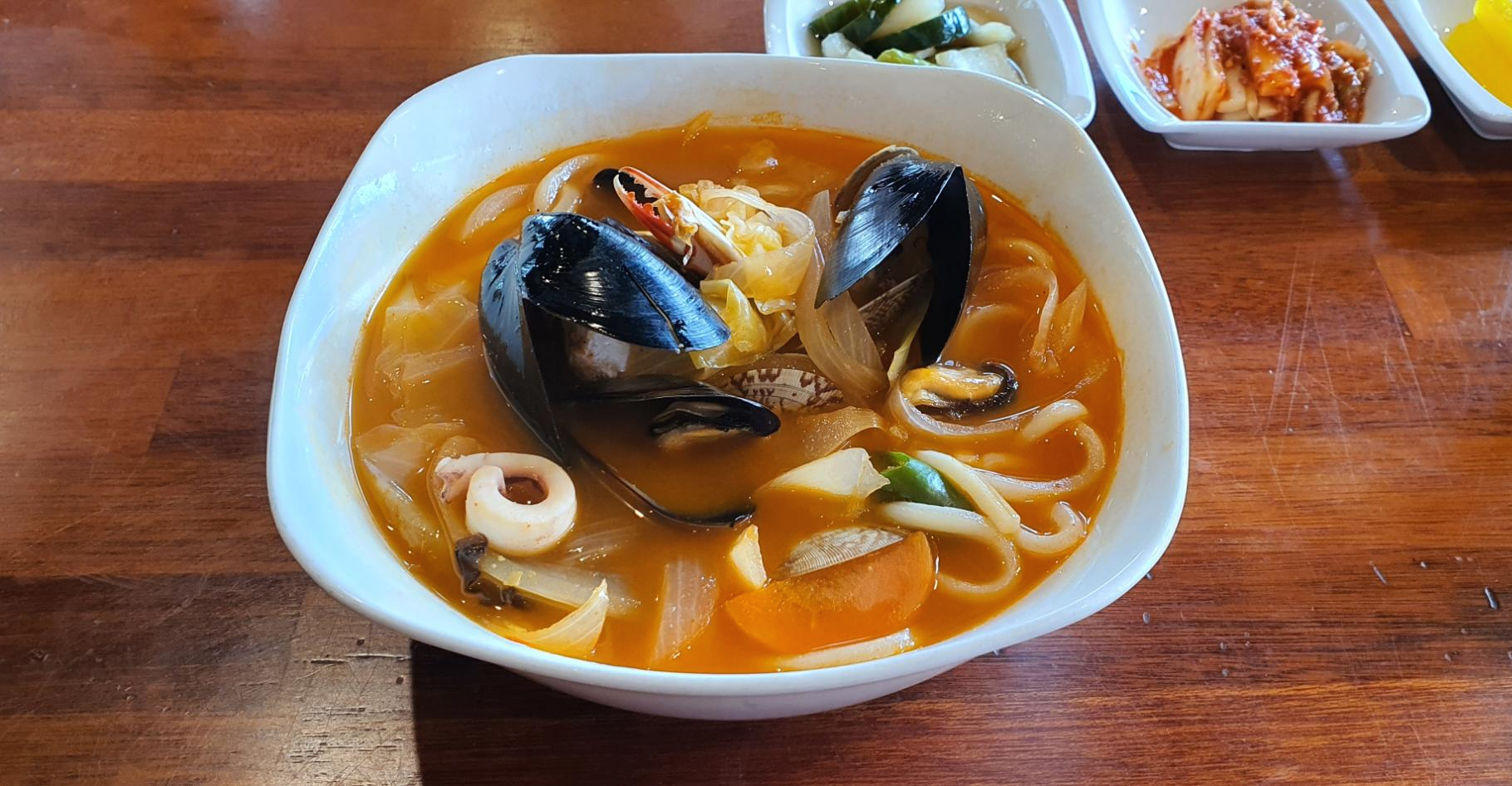 제 개인적으로 아마 다시 이 가게를 오게 되면 이걸 먹을 듯합니다. 왜냐면 대게 이제까지 제가 시킨 짬뽕우동 이라는 메뉴는 짬뽕도 아니고 우동도 아닌 약간 이상하게 맹한 국물에 맵지도 안 맵지도 않은 이상한 처방을 한 맛없는 짬뽕우동을 먹어서 개인적으로 짬뽕우동을 별로 좋아하지 않았는데 동료가 한 국물 떠먹어보라 해서 한 숟갈 떠먹어 봤는데 해장 우동으로 먹어도 될 정도로 정말 엄청 맵지도 그렇다고 맹 하지도 않은 딱 먹기 좋은 해장용 짬뽕 우동이었습니다. 양도 면이 들어가서 당연하긴 하지만 홍합에 꽃게, 오징어, 버섯, 당근 등이 들어가서 국물도 얼큰하면서 자극적인 맛도 없고 한가득 배부른 느낌을 받을 수 있는 맛이었습니다.