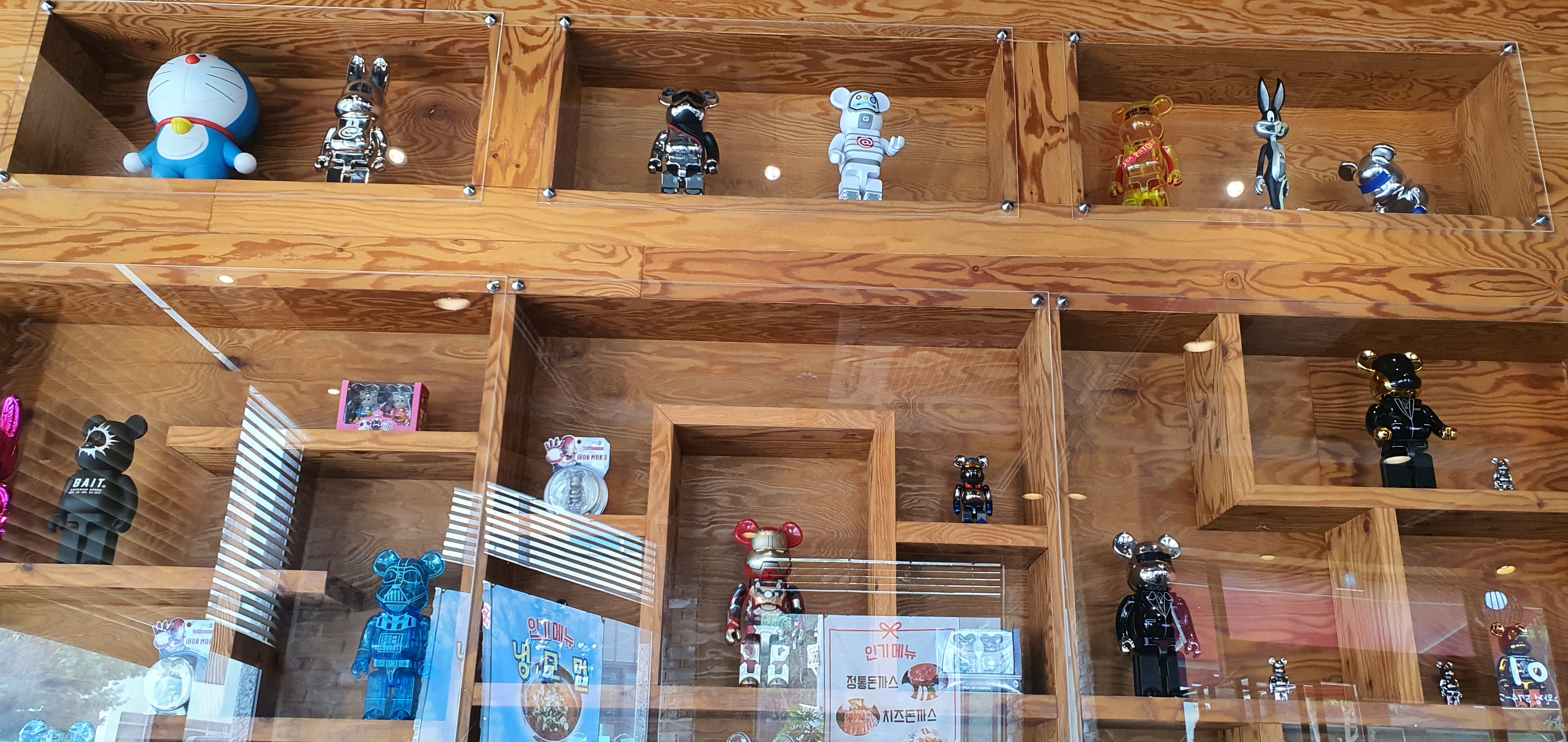 입구에만 있는 게 아니고 좌측 테이블이 있는 공간에도 브릭 베어들이 이쁘게 진열되어 있습니다. 이쯤 되면 돈가스가 문제가 아니라 주인장 분의 덕력이 얼마나 되는지가 더 궁금해지기도 합니다. 일단 그래도 이만한 수의 브릭 베어가 모여있는 걸 보니까 영화 아이언맨의 "홀 오브 아머"가 떠오르기도 합니다.
