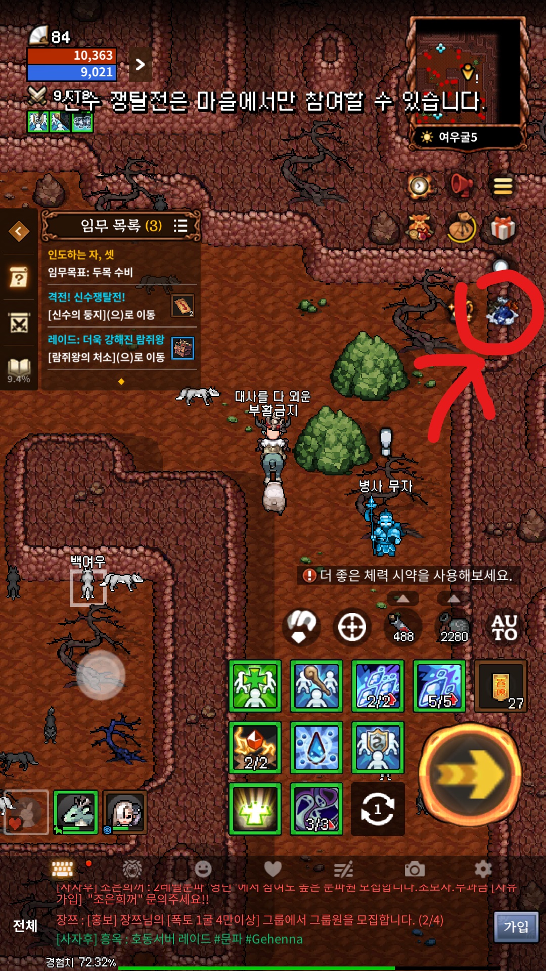 2. 신수쟁탈전 참가를 위해서는 "신수의 둥지"라는 지역으로 직접 캐릭터를 이동시켜야 한다.(자동이동이 안됨)