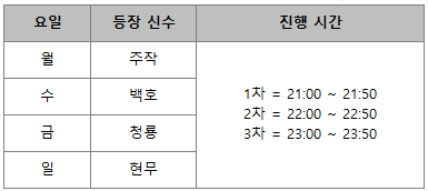 3. 본인의 플레이 캐릭터의 신수에 해당하는 요일의 신수 쟁탈전에만 참가할 수 있다.