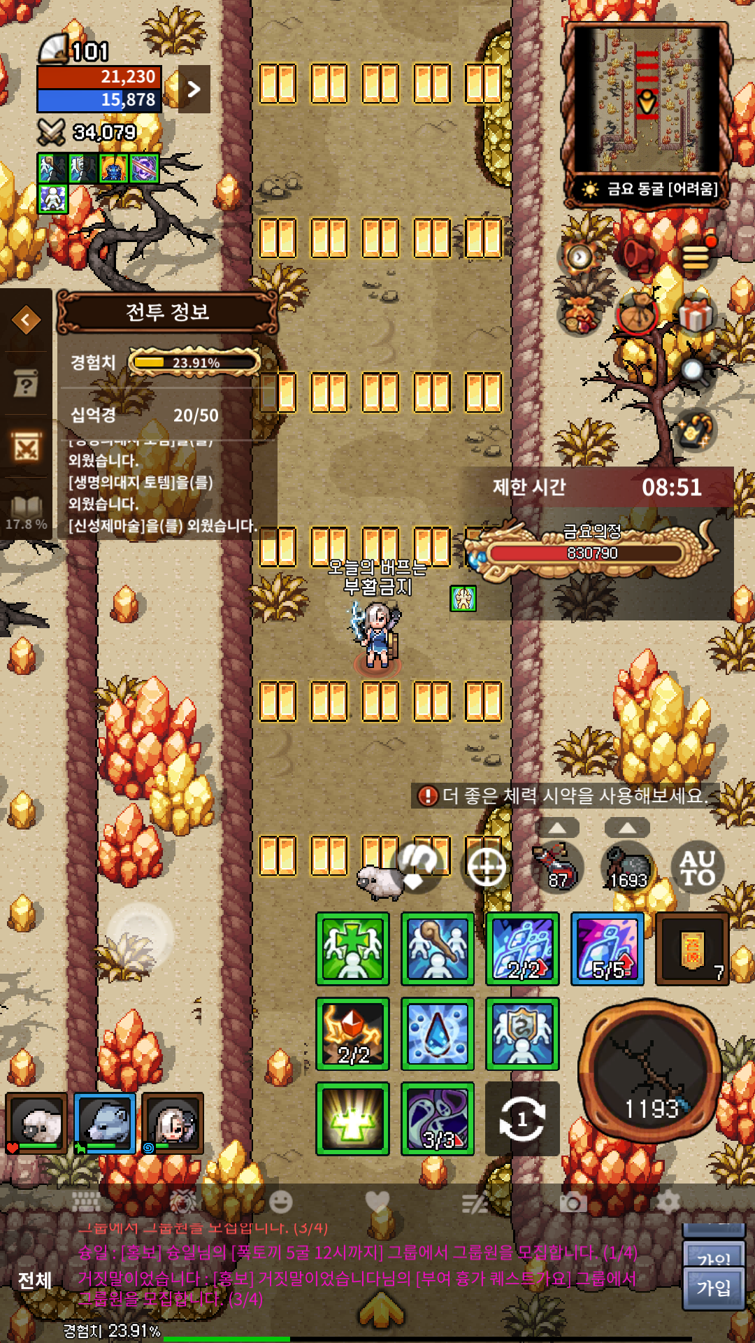 솔직히 처음 캐릭터를 키우는 99 이전의 구간에서도 귀찮아서 그냥 자동으로 진입할 테지만 나중에 등장할 신 콘텐츠가 이런 패턴을 반영한 패치를 할 수도 있을지 모르니 미리사 연습 겸 한다는 느낌으로 해보면 어떨까 싶습니다.