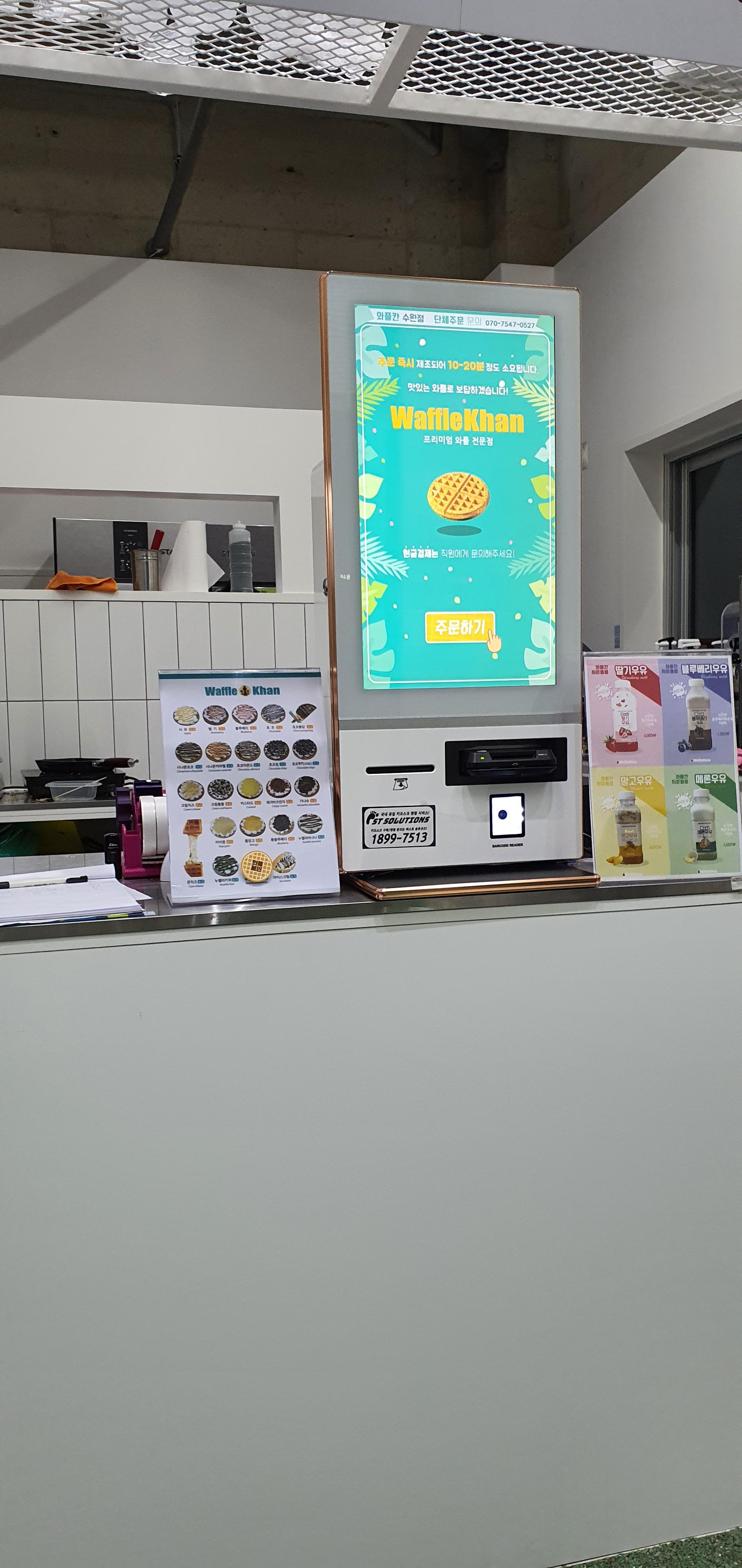 이곳 "와플칸"도 버거킹이나 KFC 같이 무인 키오스크를 통해서 주문을 진행하여 결제를 하면 주방에서 와플이 완성되어 나오면 주문한 손님이 있는 테이블로 직원분이 직접 가져다줍니다. 요즘 같은 시국에는 비대면이 중요하니까 방역에 도움이 되는 이런 부분이 더 많아졌으면 합니다.