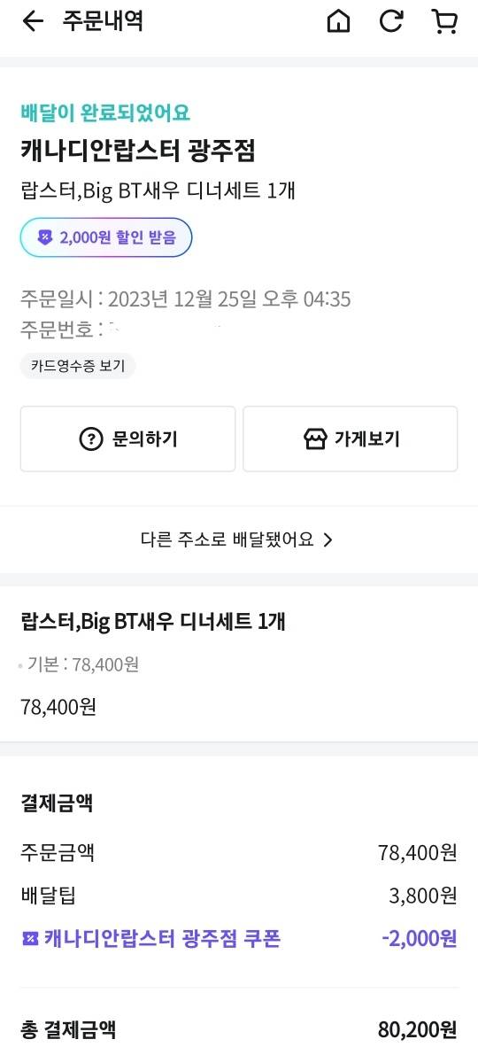 12월 25일 성탄절 당일날에도 배달이 될까 싶었는데 배달의 민족 어플에서 영업 중이라는 상태가 확인되어