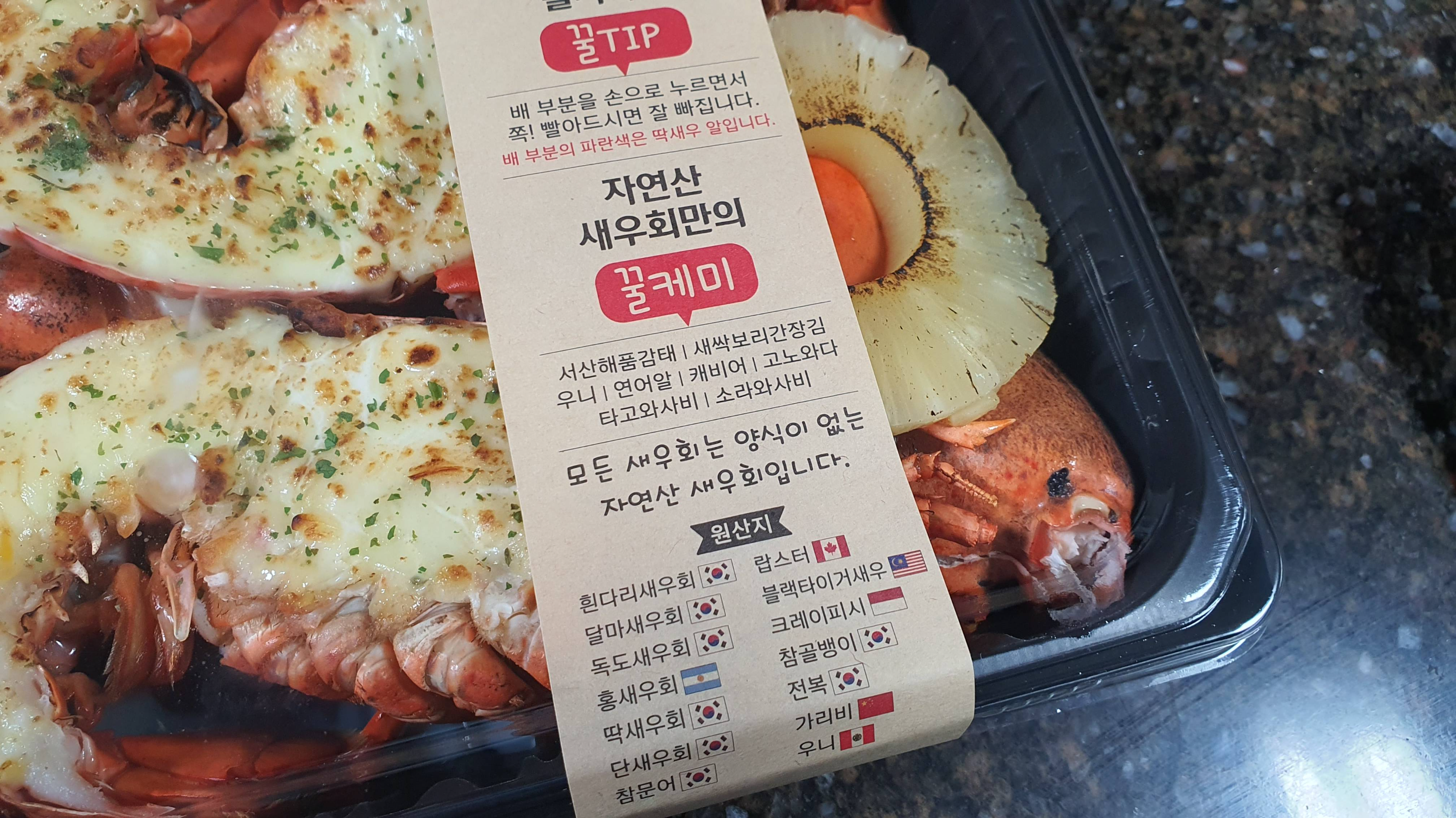 블랙타이거새우의 국적은 말레이시아, 랍스터는 캐나다가 되겠습니다.