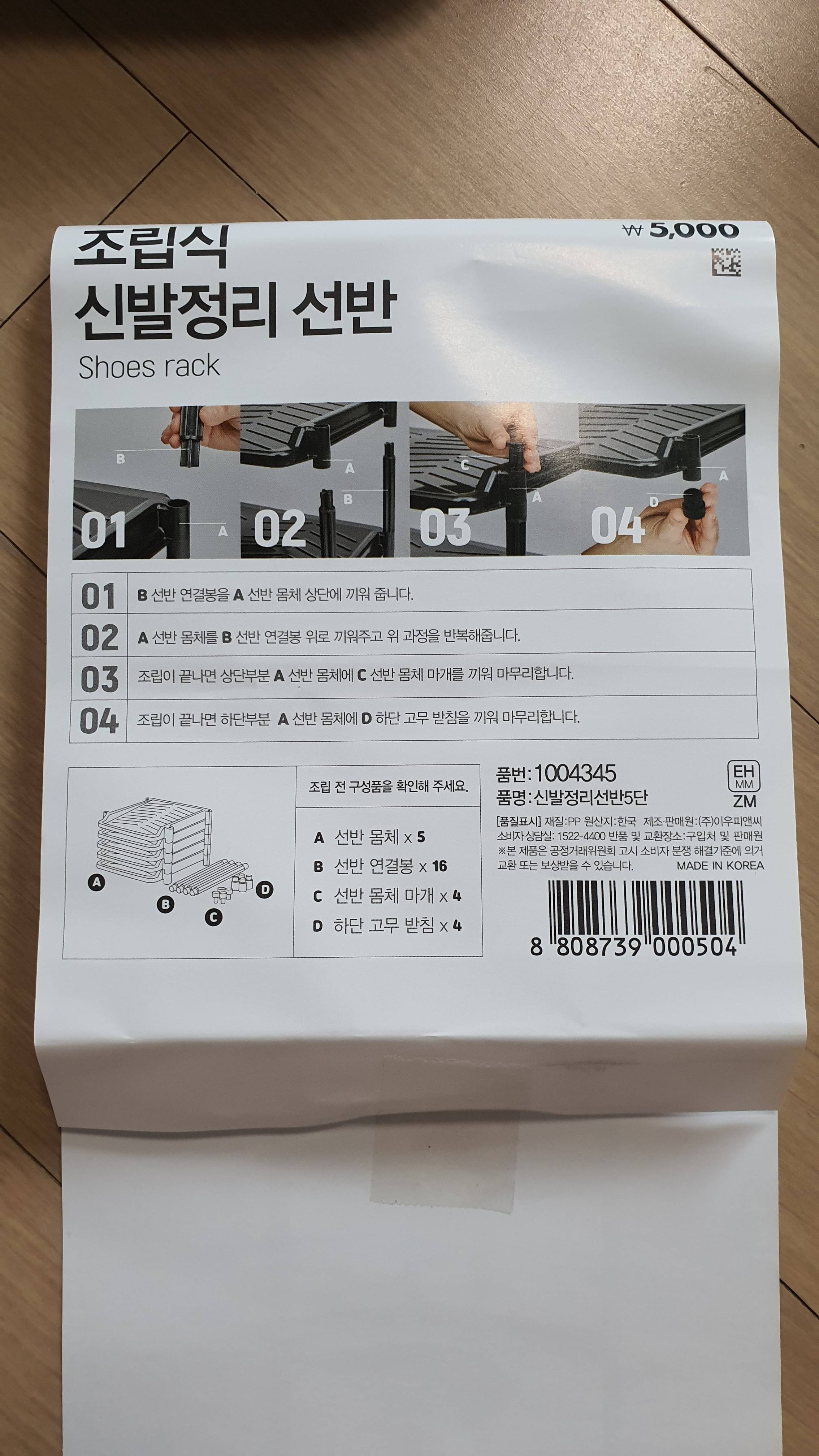 제목 그대로 신발을 정리해서 진열해 둘 수 있는 선반으로 직접 조립해야 하는 제품입니다.