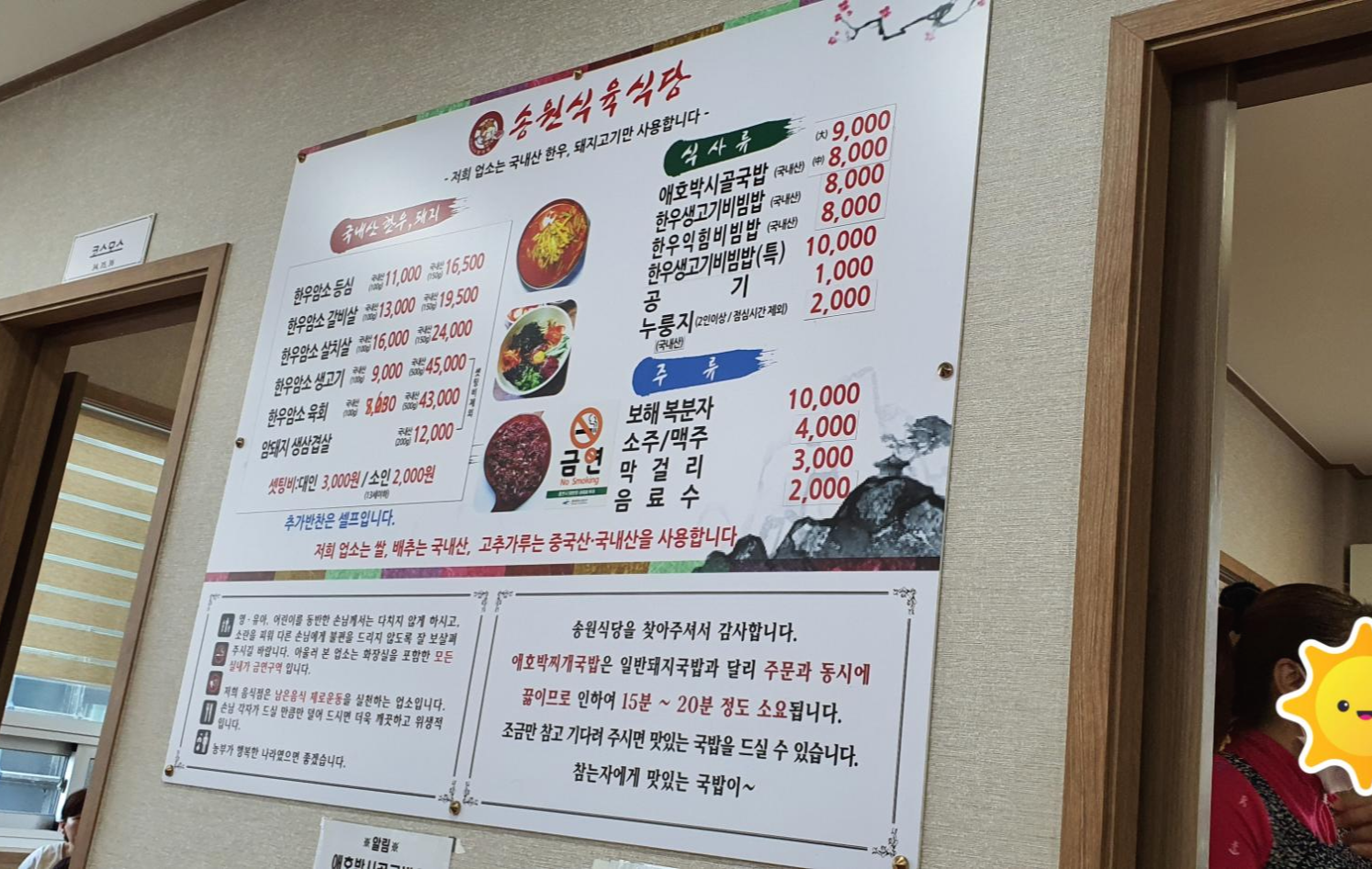입구에서부터 여기는 장어탕만 하는 가게다라는 포스가 뿜 뿜 풍기는 이곳은 가족이 2대에 걸쳐서 약 40여 년간 가게를 해오고 있는 곳이라고 하였습니다. 가게 내부의 모습은 점심시간 사람이 붐비어서 찍지는 못하였지만 가게 입구를 통하여 들어가면 주방이 바로 보이는 곳에 홀에 2명 정도 앉을 수 있는 테이블이 하나 있으며 안쪽으로 방이 하나 있고 여러 명이 앉을 수 있는 구조였습니다. 아무래도 녹동이 번화한 도시는 아닌지라 넓은 좌석이나 깨끗한 내부 인테리어를 가지고 있는 건 아니었지만 그래도 단순하면서 깔끔하게 잘 정리되어 있어서 좋았습니다.