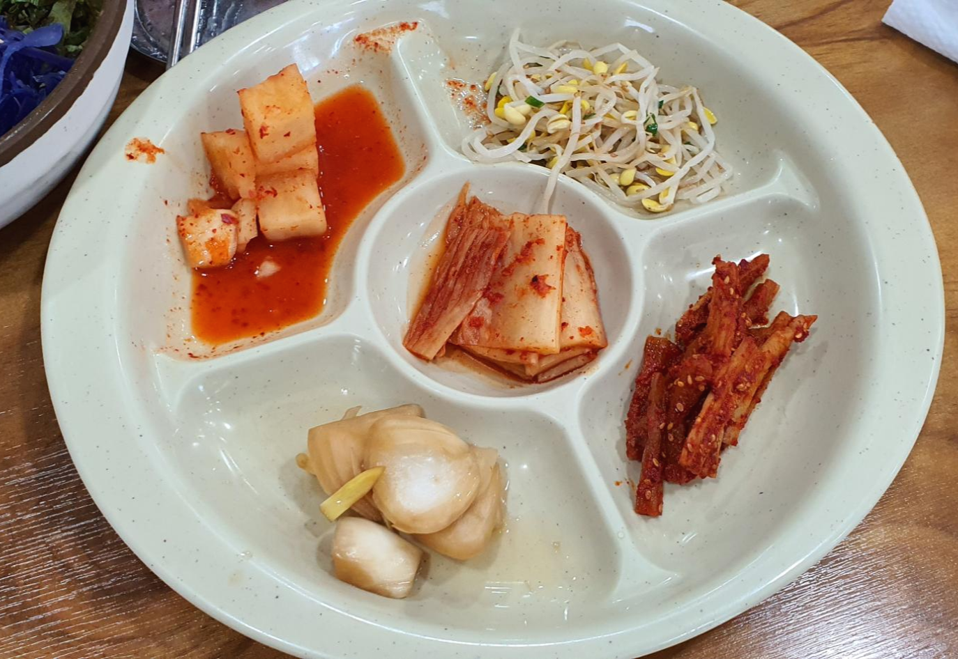 솔직히 기본으로 나오는 찬은 좀 부실하긴 합니다. 깍두기, 김치, 양파김치, 콩나물무침, 무말랭이가 전부입니다만 원체 본 메뉴가 자체가 양이 많아서 막상 본 메뉴 받고 나면 반찬은 아웃 오브 안중이 됩니다.