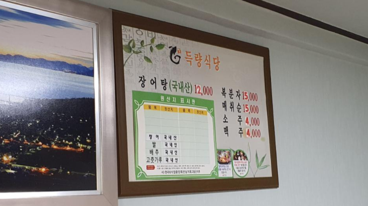 금일 점심 식사 메뉴는 오래간만에 장어탕으로 고르게 되었고 녹동항에 있는 여러 가게들 중에 "득량 식당"이라는 곳으로 들어가게 되었습니다.