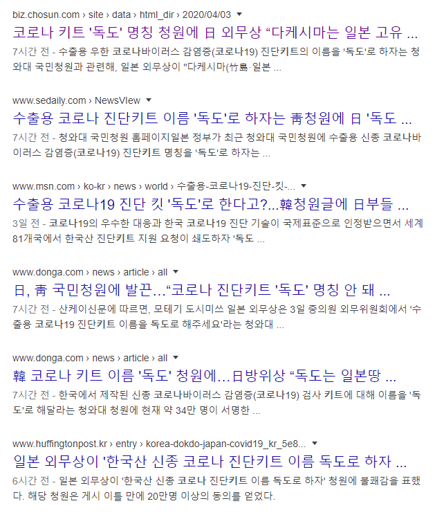 | 수출형 한국산 코로나 바이러스 진단 키트의 명칭 청원(a.k.a 독도) (0) | 2020.04.03 |
