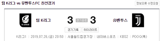 지난 7월 26일 한국 한국 서울 월드컵경기장에서 팀 K리그라고 명명된 한국 올스타 축구 플레이어들과 이탈리아 프로축구 세리에 A 유벤투스 FC 친선경기가 진행되었다.