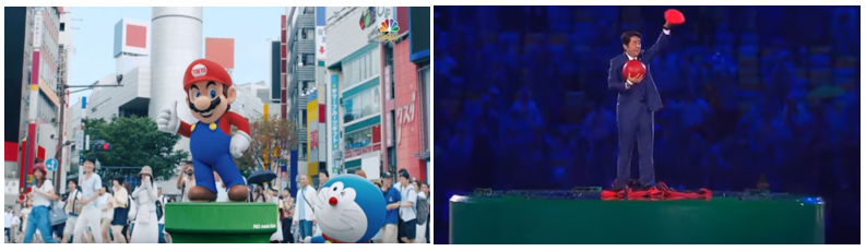 아직도 리우올림픽폐막식때 아베 총리가 마리오 코스프레를 하고 나왔던 때를 생각하면 정말 대단한 퍼포먼스였다고 밖에는 생각이 안들 정도로 전 세계적으로도 유명하면서 친근한 게임의 IP와 국가 이미지를 잘 섞은 좋은 예라고 생각한다.