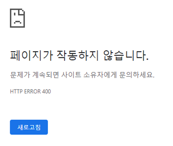 "페이지가 작동하지 않습니다 HTTP ERROR 400"