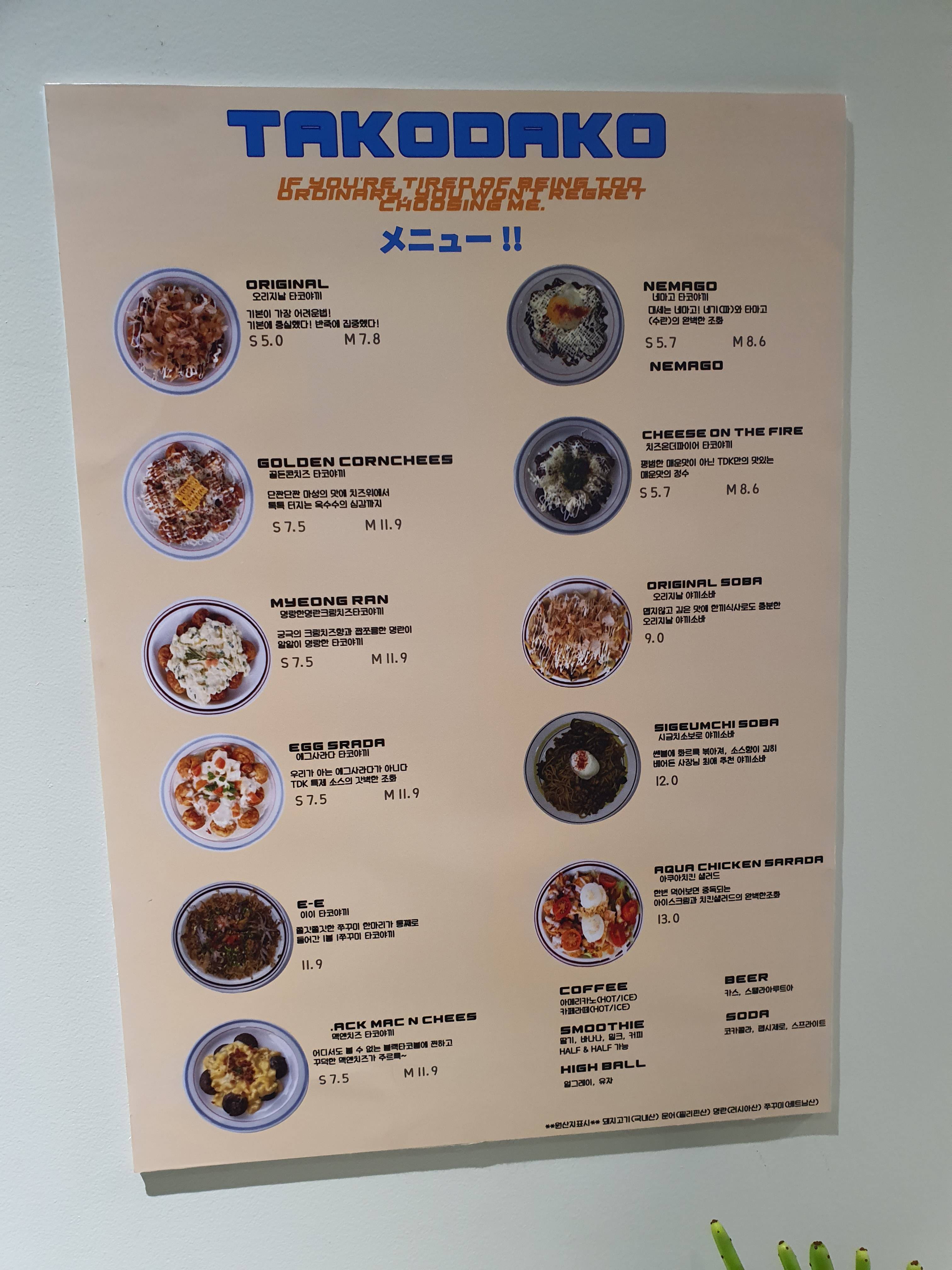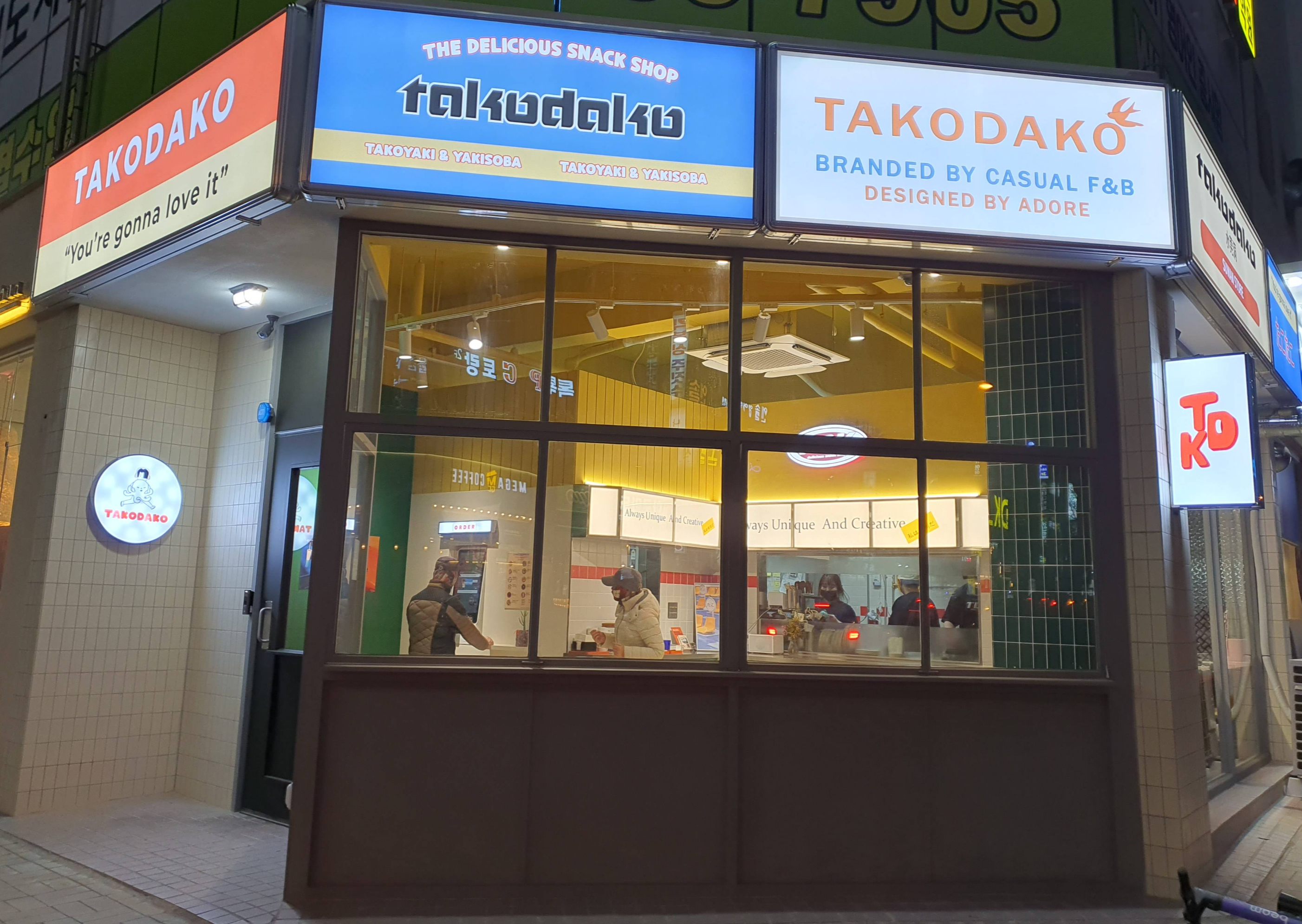 "타코다코(TAKODAKO)"라는 가게로 밖에서 딱 보면 타코야키가 주를 이루는 가게 일 듯한 느낌이 물씬 듭니다.
