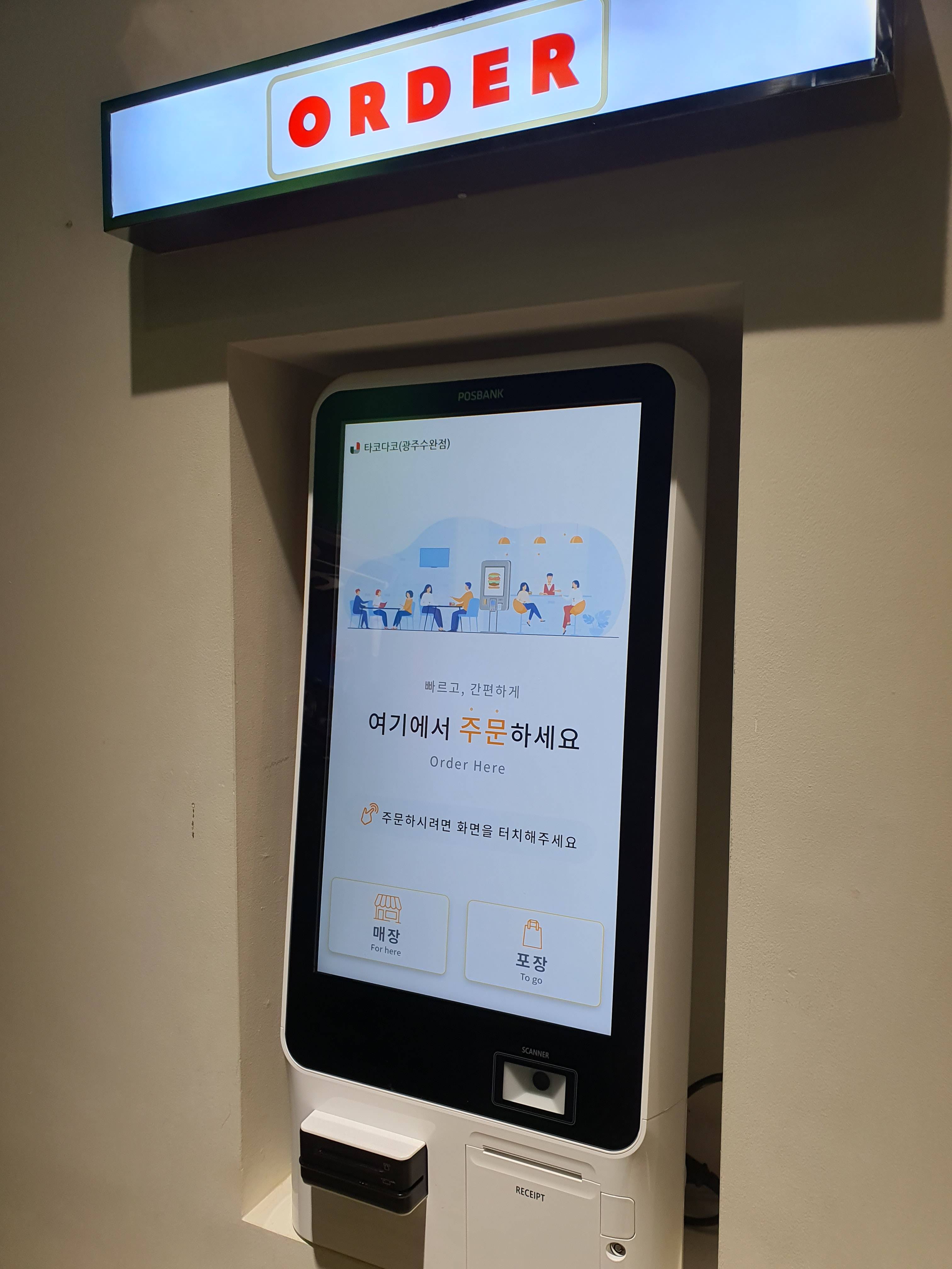 주문은 매장의 문을 열자마자 바로 앞에 보이는 무인 키오스크를 통해서 하면 됩니다.