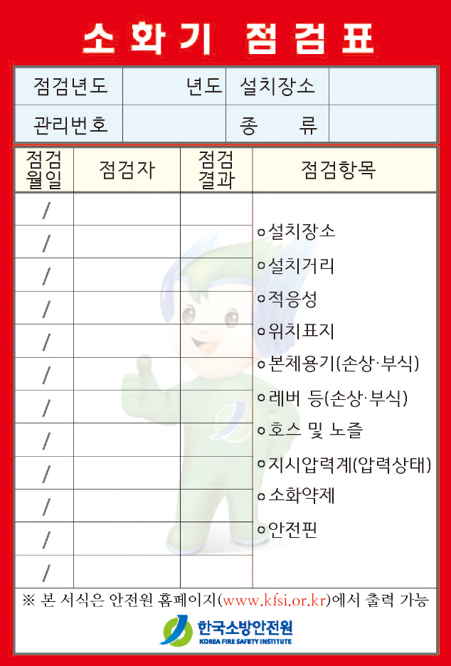 소화기 점검표 서식 무료로 간단하게 출력하기 - 한국소방안전원